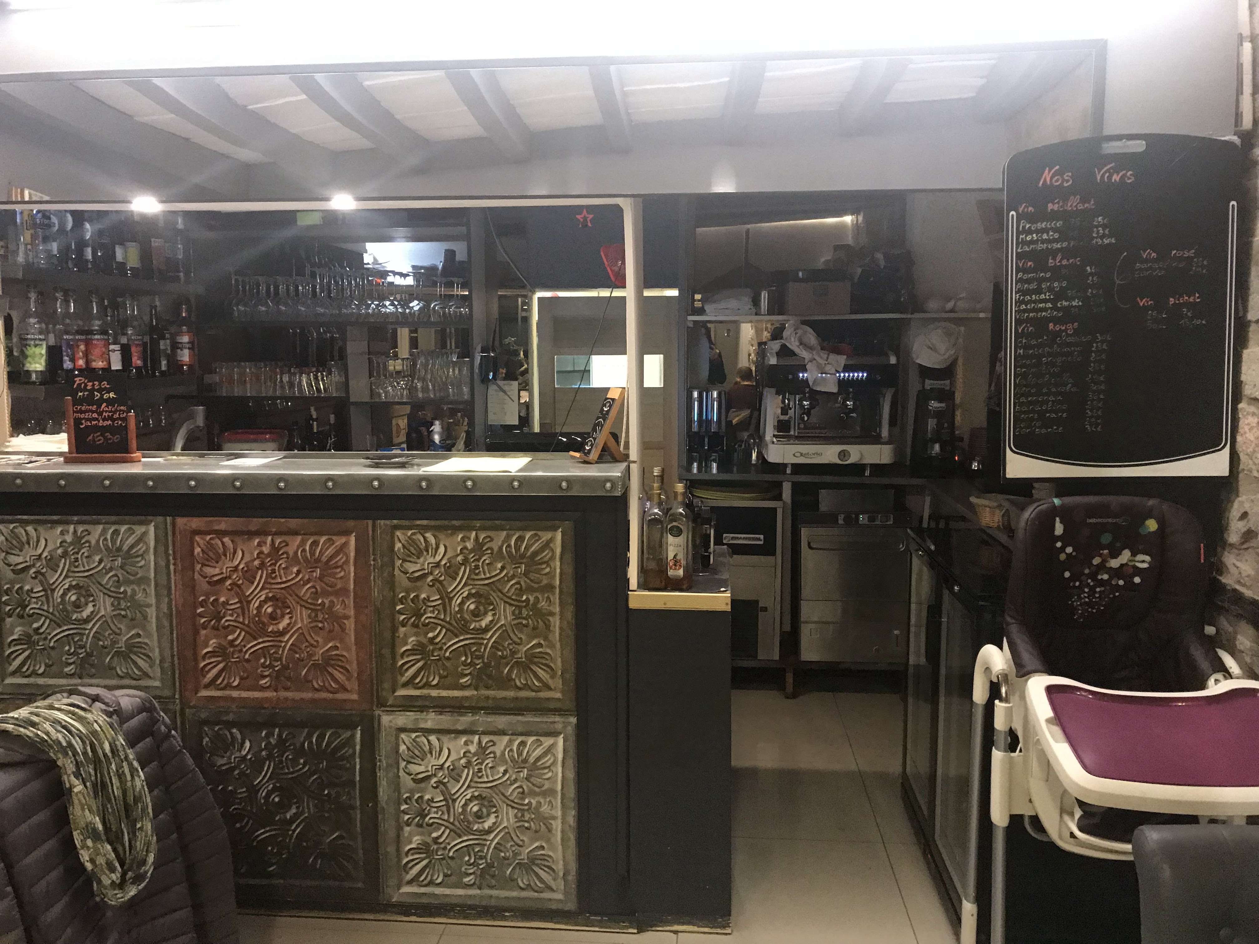 J'ai mangé une fois sur place des lasagnes et j'avais trouvé ça très bon. En revanche, une deuxième fois, des pizza a emporter qui m'ont un peu déçu. Je n'ai pas remangé sur place depuis le passage du chef. Donc, a retester.