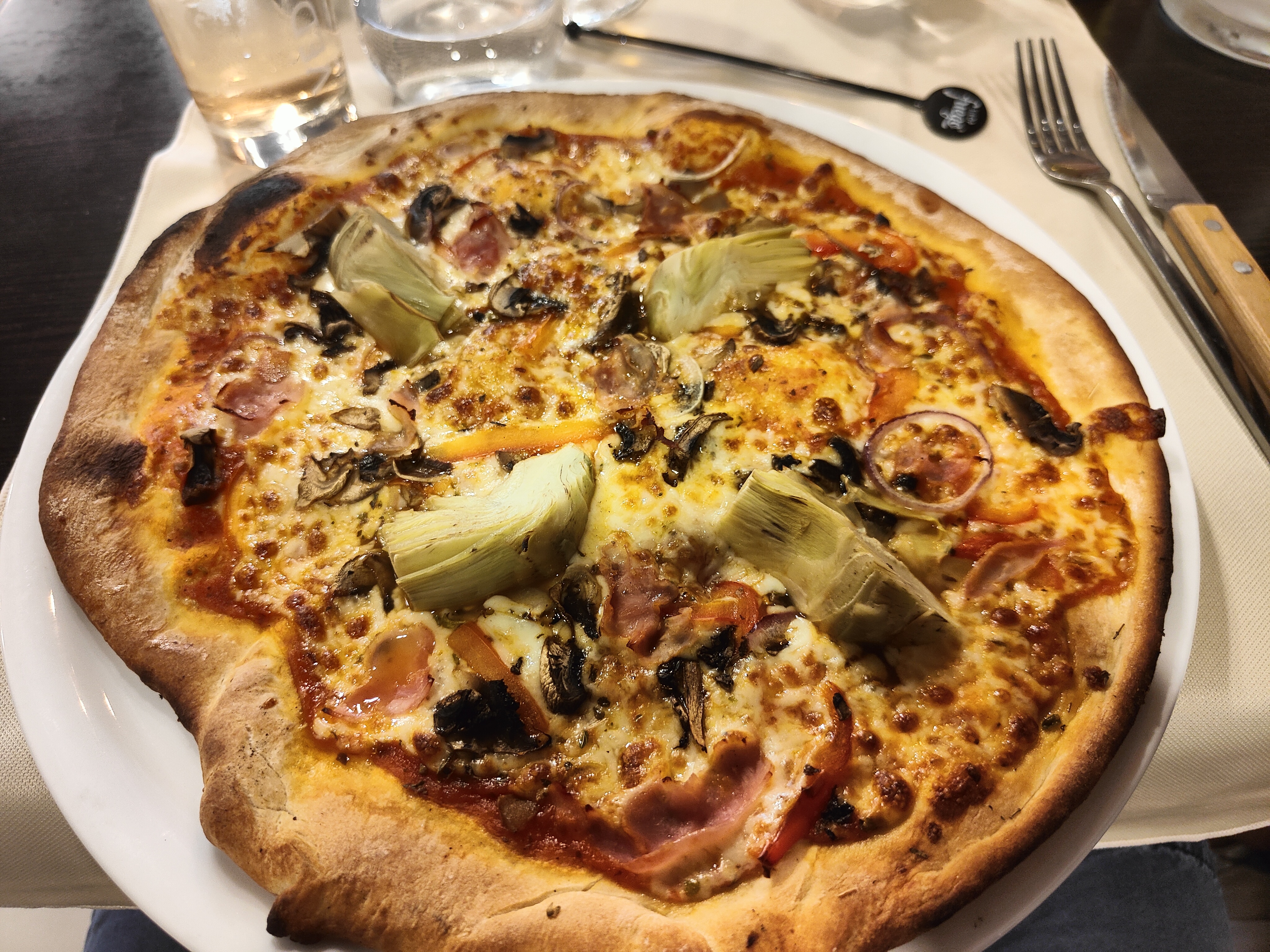 On a attendu 1 an et demi avant de pouvoir aller dans ce restaurant avec la crise Covid (on vient de Belgique). Un petit détour dans notre circuit pour aller à Besançon et aller dans ce resto qui nous avait marqué dans un épisode de cauchemar en cuisine. C'est sans regrets que nous y sommes allés 🙂 les pizzas étaient très bonnes, j'aurais juste préféré avoir un peu plus de morceaux de jambon dans ma 4 saisons 😁 et une très bonne glace au caramel.
