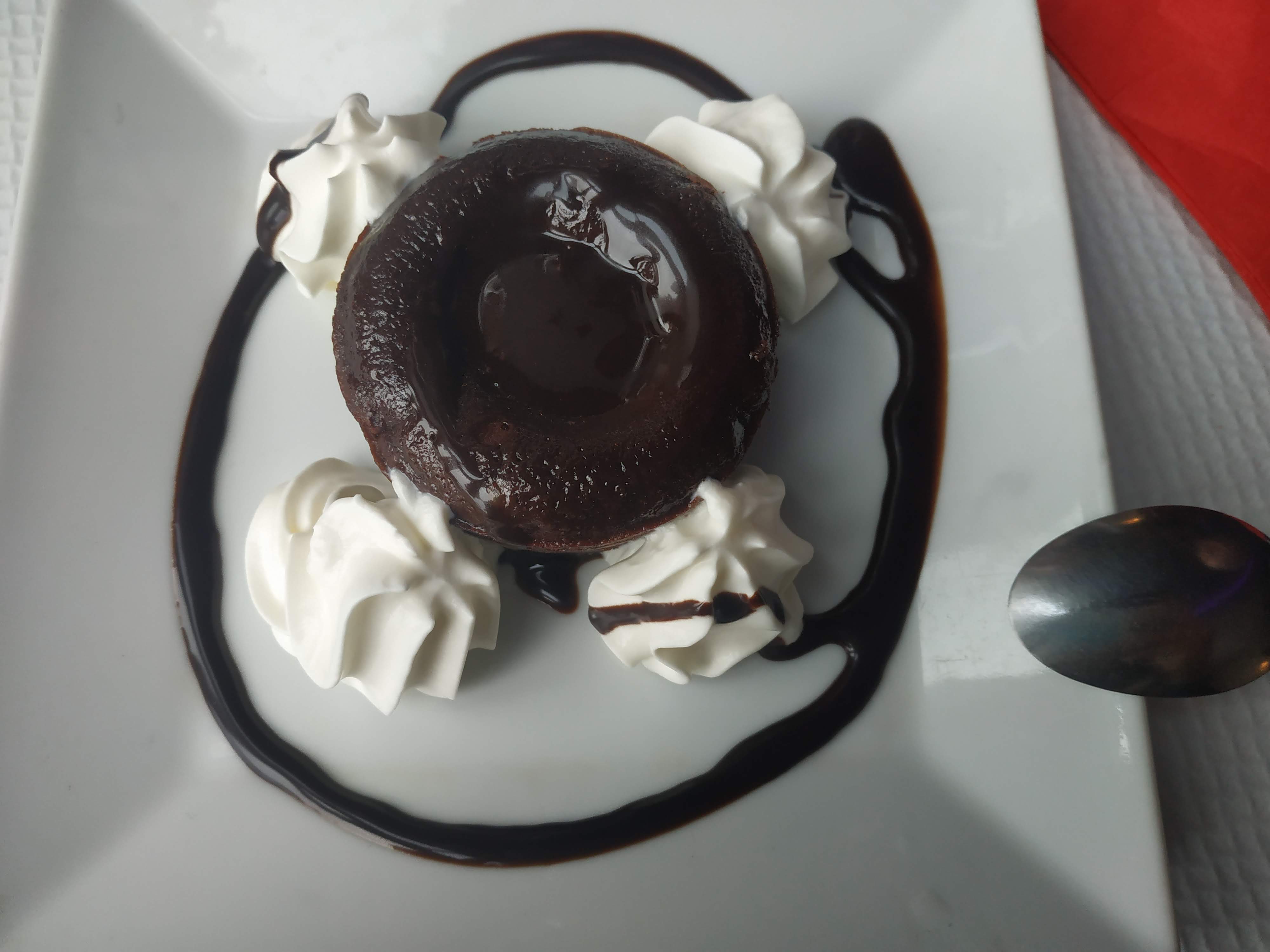 En direct du st trop.....petit depaysement avec le nom car ici lyon en hiver... pris une pizza poulet mozzarella , un verre de vin blanc et un fondant chocolat accompagné d un café. j avais choisi une table près de la fenetre....un peu froid. note pizza : 6,5/10. Pate un peu resistante sous le couteau...gout correct mais tres peu de poulet. un fondant chocolat noir :6/10. la chantilly fade et sans interet. café sympa. le tres bon point: l accueil souriant et le suivi de la serveuse/cuisiniere?...10/10. le decor...hum...vieillot...un peu bar a touristes parisiens....😉 mais jolie terrasse en été. Je reviendrais tester la tajine et le couscous... Sophie. N.