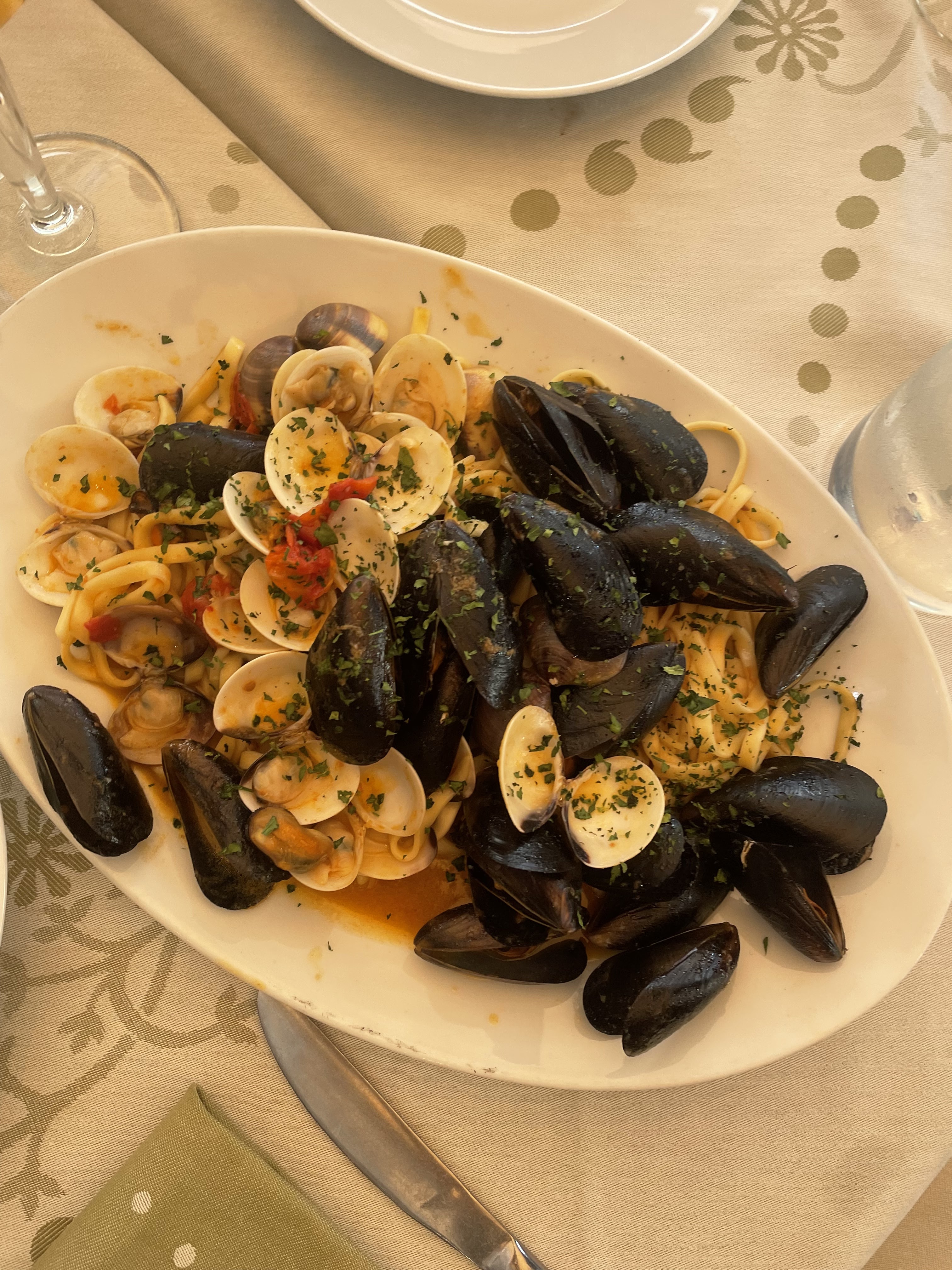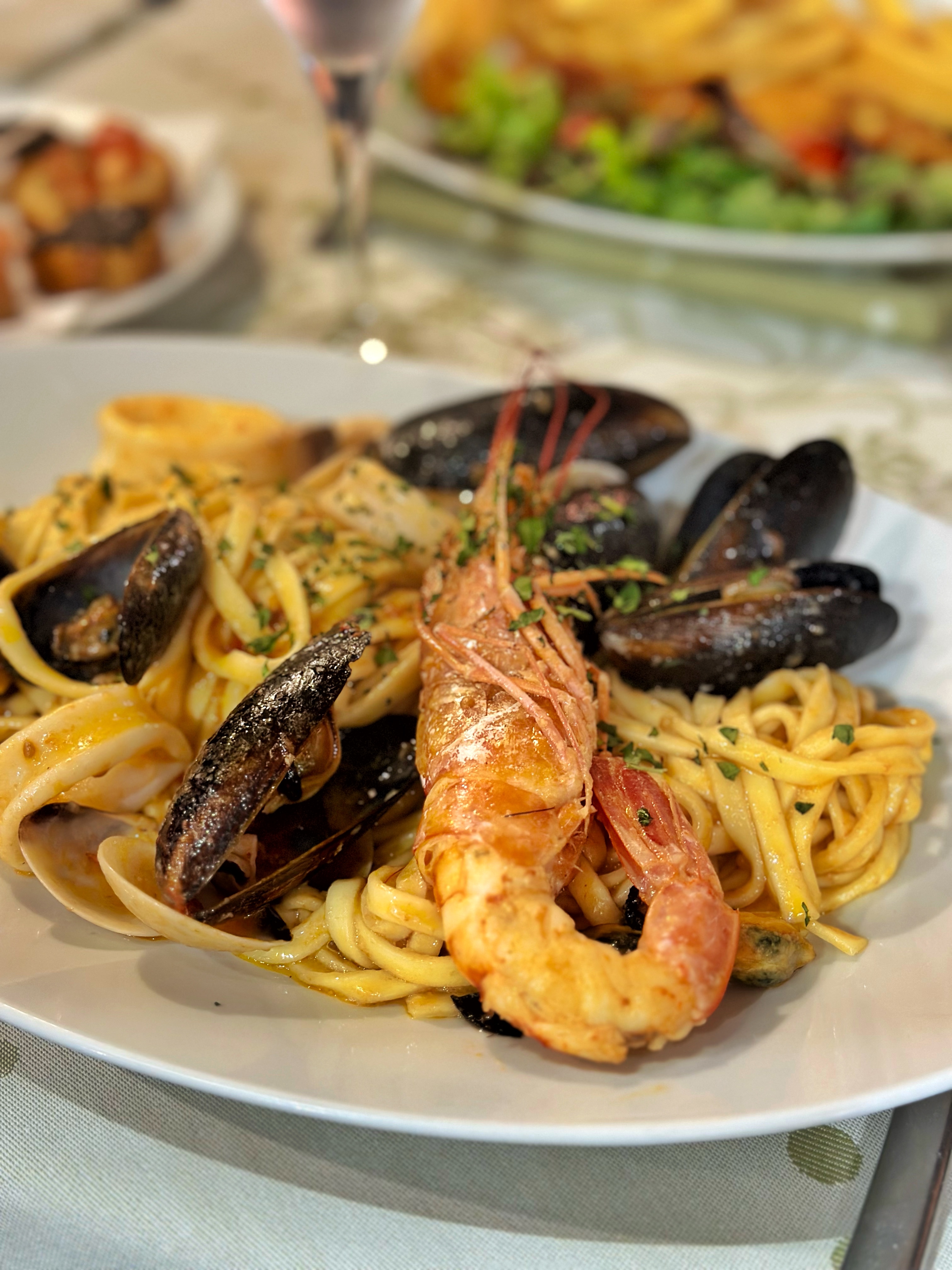 Leurs pâtes fraîches servis al denté avec des palourdes et moules délicieuses. Idem pour celle servis avec des gambas pré _décortiquées.