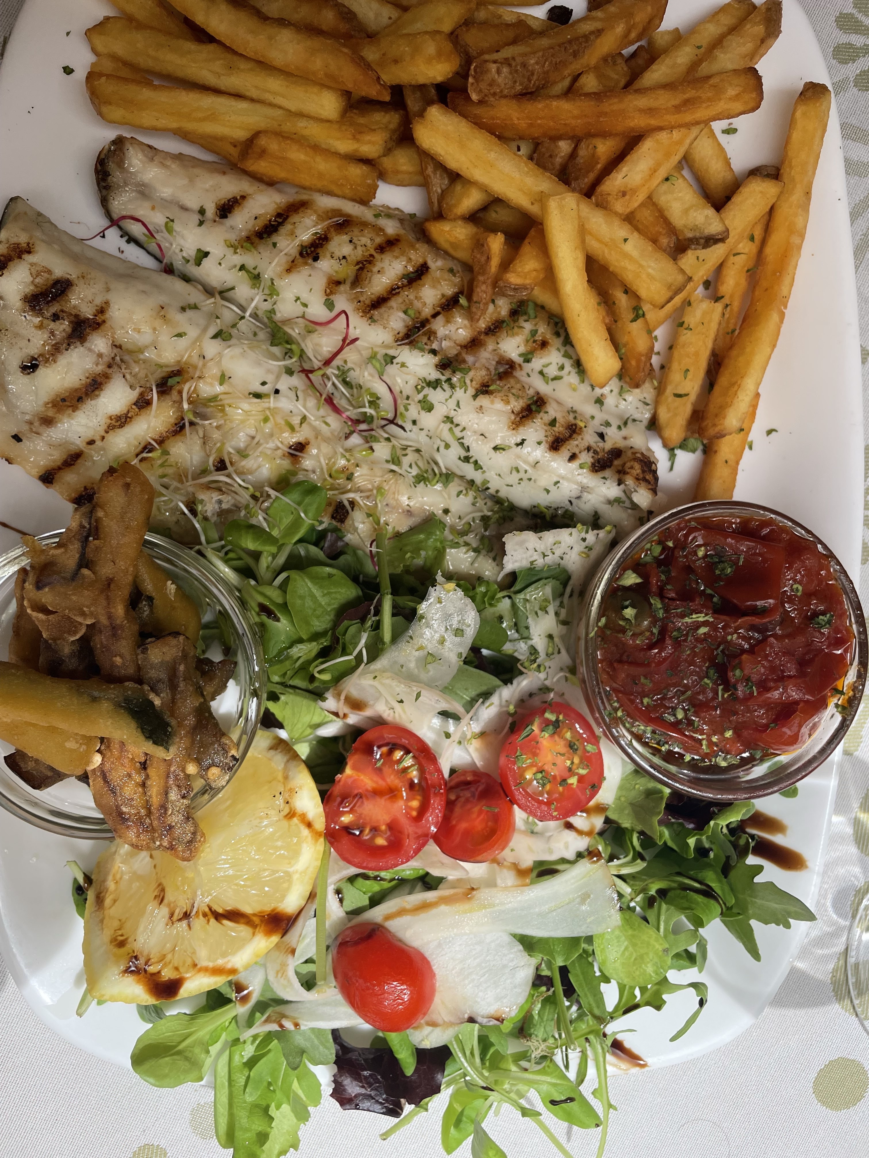 Très bon accueil. Nous avons pris du filet de loup, un régal ! En accompagnement frites salade et surtout des petits morceaux de courgettes et autres légumes fris qui nous ont régalé. Nous reviendrons avec plaisir. 🤗