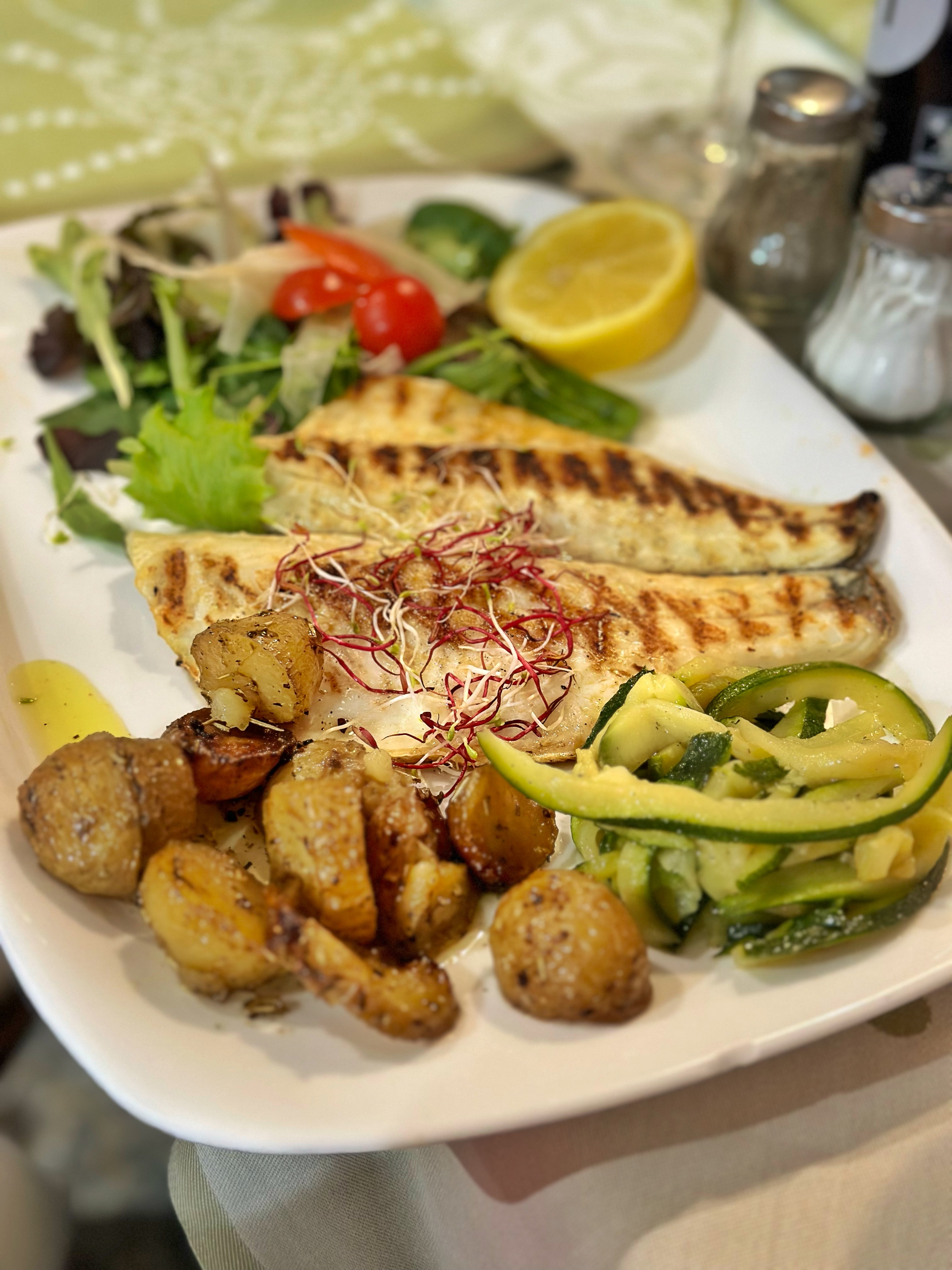 Bon restaurant et personnel sympathique malgré une salle un peu sombre. Nous avons commandé des filets de loups qui étaient bien cuits et frais.