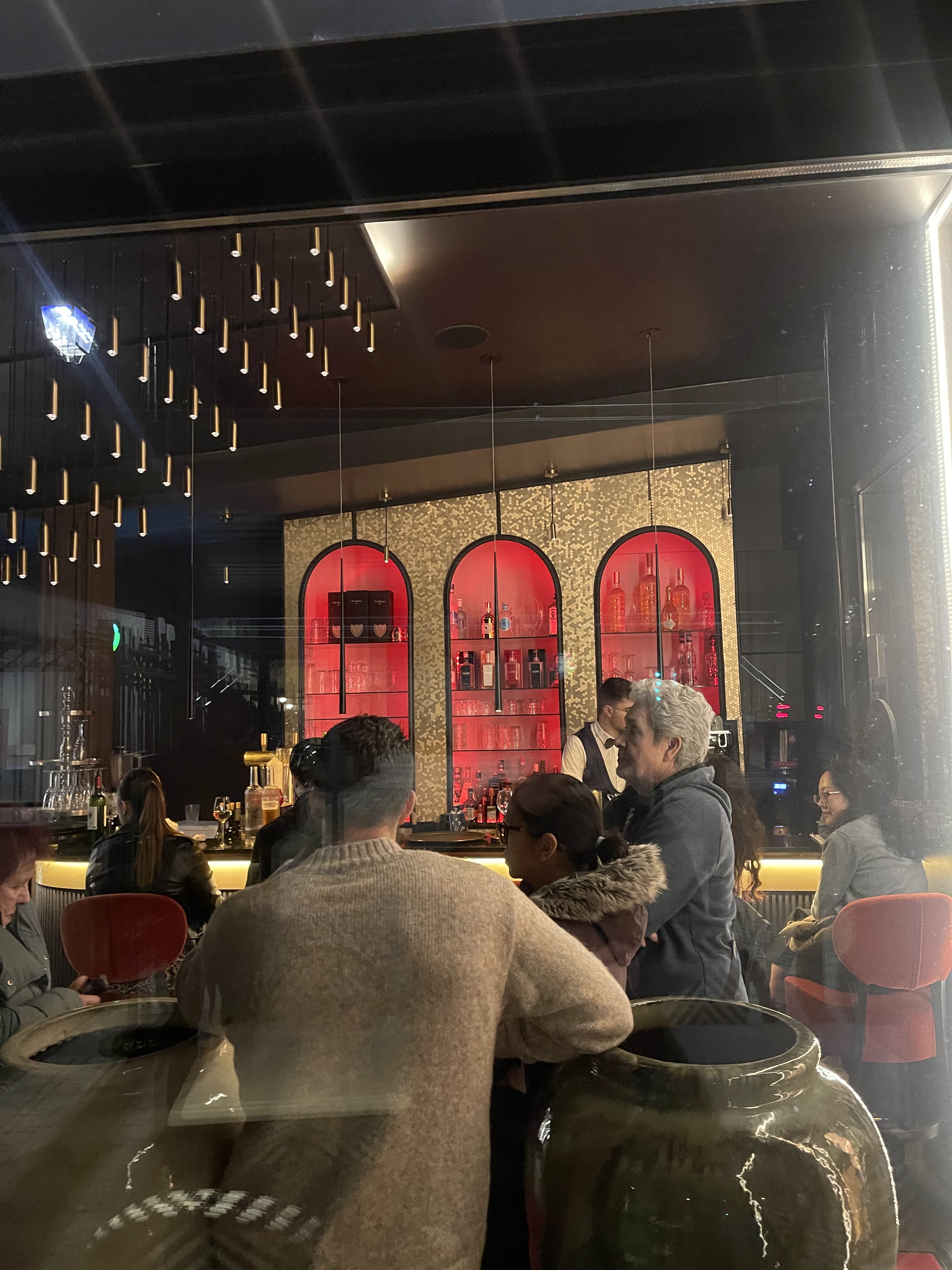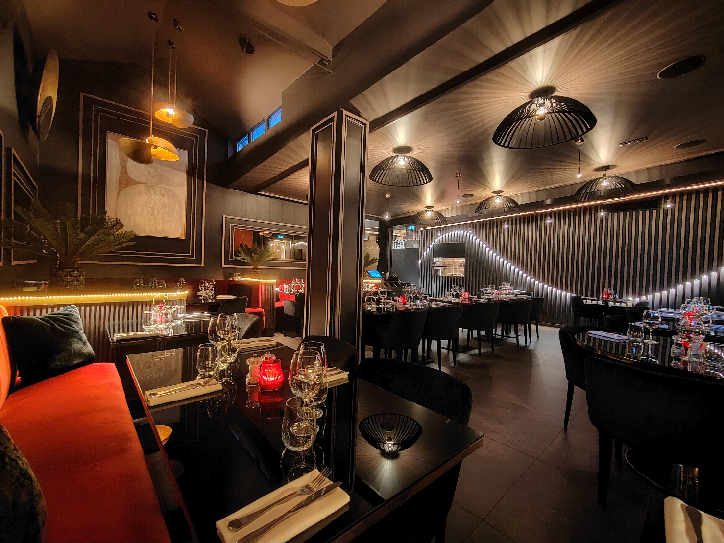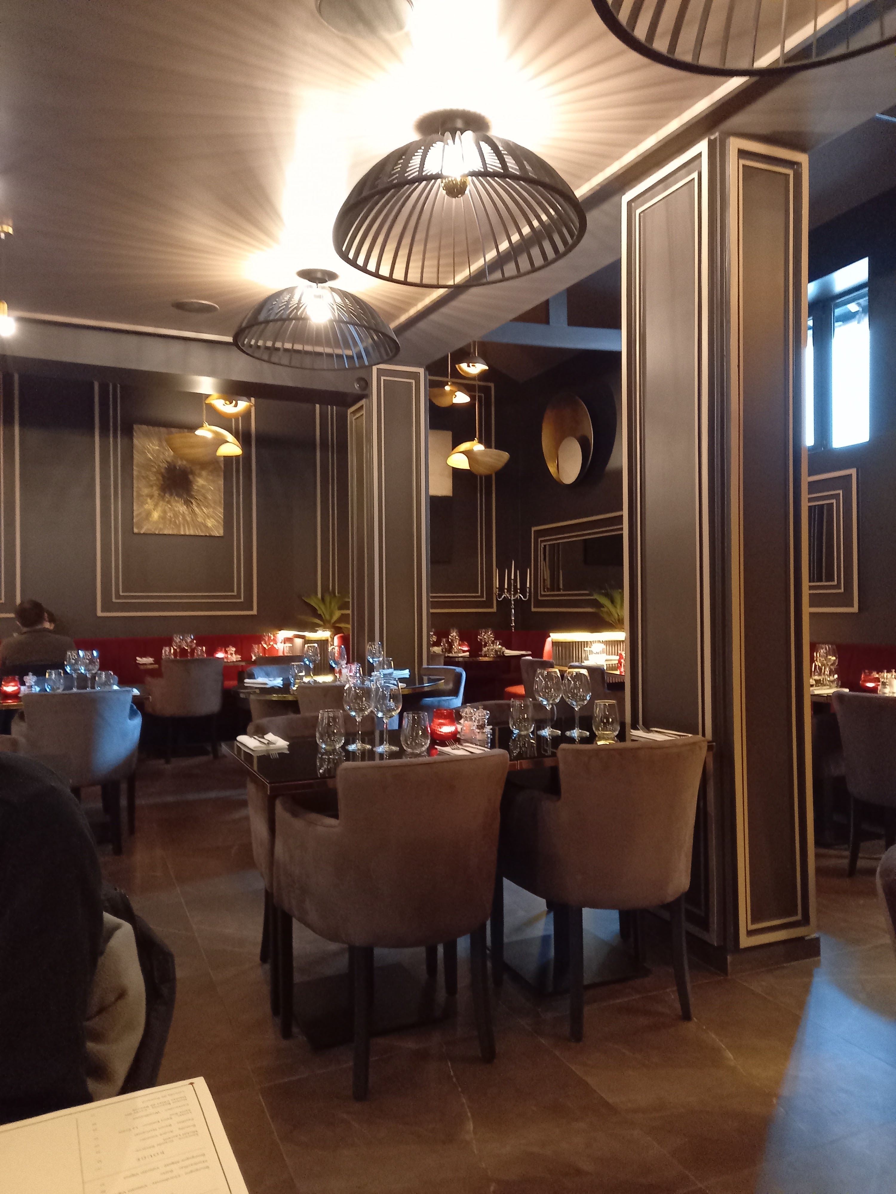 Nous avions réservé une table pour 7 personnes (une chaise pour enfant était en bout de table … no comment) nous étions finalement 6. Globalement nous avons apprécié notre soirée. Cependant, quelques détails méritent d'être soulignés : le rapport qualité-prix des entrées et des desserts n'était pas à la hauteur (desserts digne de MÉTRO / picard), les prix étant assez élevés. Pour le thé gourmand, nous nous attendions à une expérience plus élaborée, peut-être un thé à la marocaine ou turc, m une sélection de thés plus raffinés peut-être ? Mais nous avons reçu un sachet de thé standard. En ce qui concerne les plats à base de viande, la qualité était excellente, mais les accompagnements étaient servis en petite quantité, ce qui était dommage. Je déconseille le plat au pavé de saumon car la portion était peu consistante. En ce qui concerne l'ambiance, la décoration était superbe et l'ambiance tamisée, bien que peut-être un peu trop. Malheureusement, l'éclairage de la table pour 6 personnes était limité à une seule lampe. La musique de la DJ était très bonne, mais le volume élevé rendait la conversation difficile. Autre petit plus : le Parking à proximité 🤩🤩 Je tiens à remercier chaleureusement la serveuse pour sa mémoire exceptionnelle dans la prise de nos commandes, sa gentillesse et ses conseils avisés. Félicitations à toute l'équipe pour leur travail.