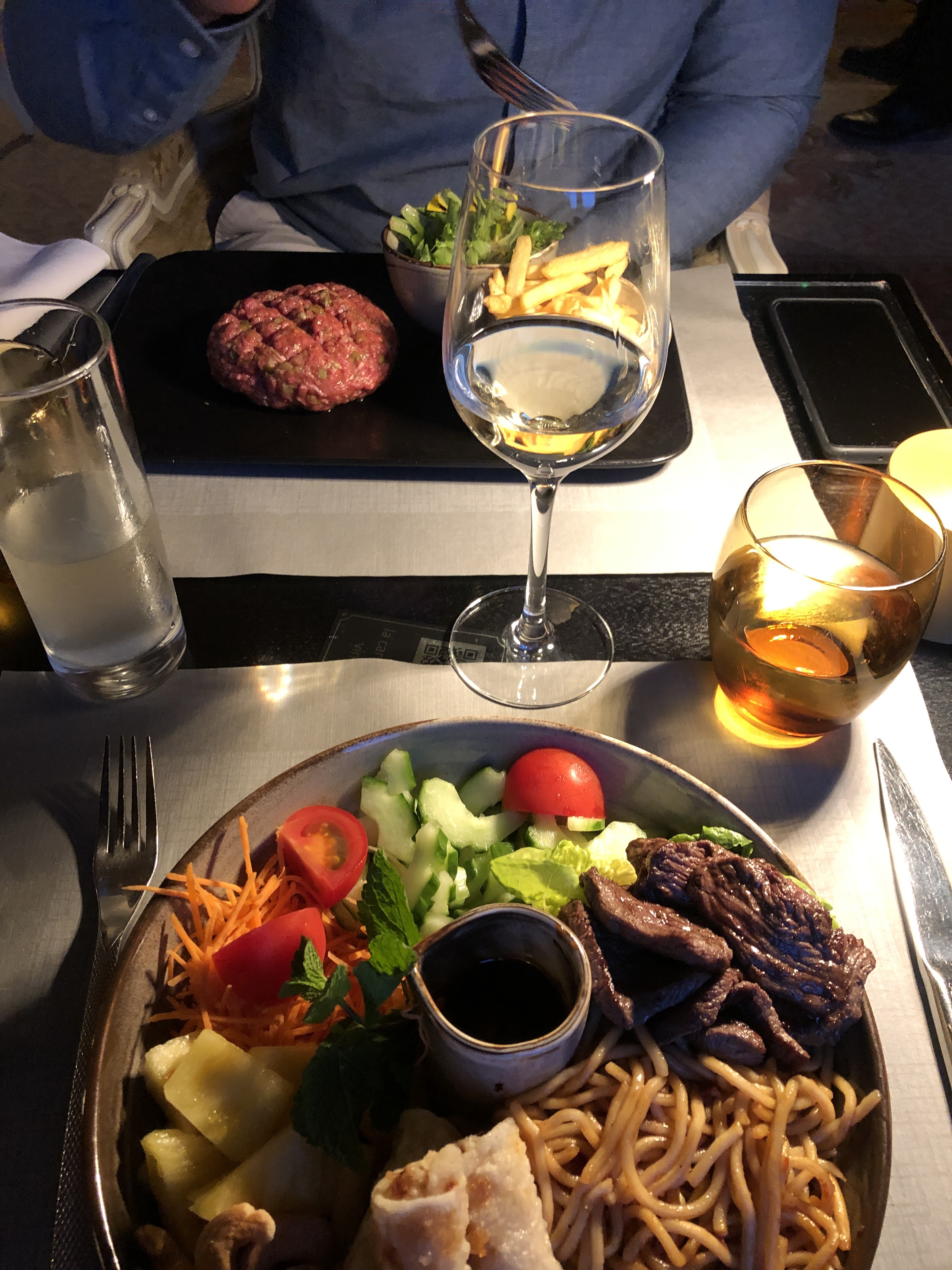 Du bon et du moins bon. Le bon: Le cadre la luminosité la cheminée cosy Le service est aimable et efficace. Le burger était bon. La salade de ma femme aussi. Le thé gourmand aussi. Le moins bon. Cocktail à 21 euros servi dans un verre banal rempli à plus de la moitié de glace pilée (saint germain en lillet). Ça l'aurait fait sur un cocktail à 7 euros 3 gorgées. Steak tartare au couteau, pas au couteau apparemment ils nous arrivent comme ça me dit le serveur ouch !!! (Renvoyé en cuisine c'était de la purée de viande) les serveurs l'ont fait sans discuter et aimablement . Le fameux cheese burger était bon . En revanche frites surgelées macdo.... Sérieusement une patate ça se transforme en frites en 15 secondes avec les bons outils. Abusé ça fait vraiment cheap. Pour un burger à 35 euros. En conclusion on a quand même passé une bonne soirée et si la direction revoit un tout petit peu sa copie ça aurait pu être parfait. Voilà à quoi ressemble un tartare au couteau Photo ci dessous