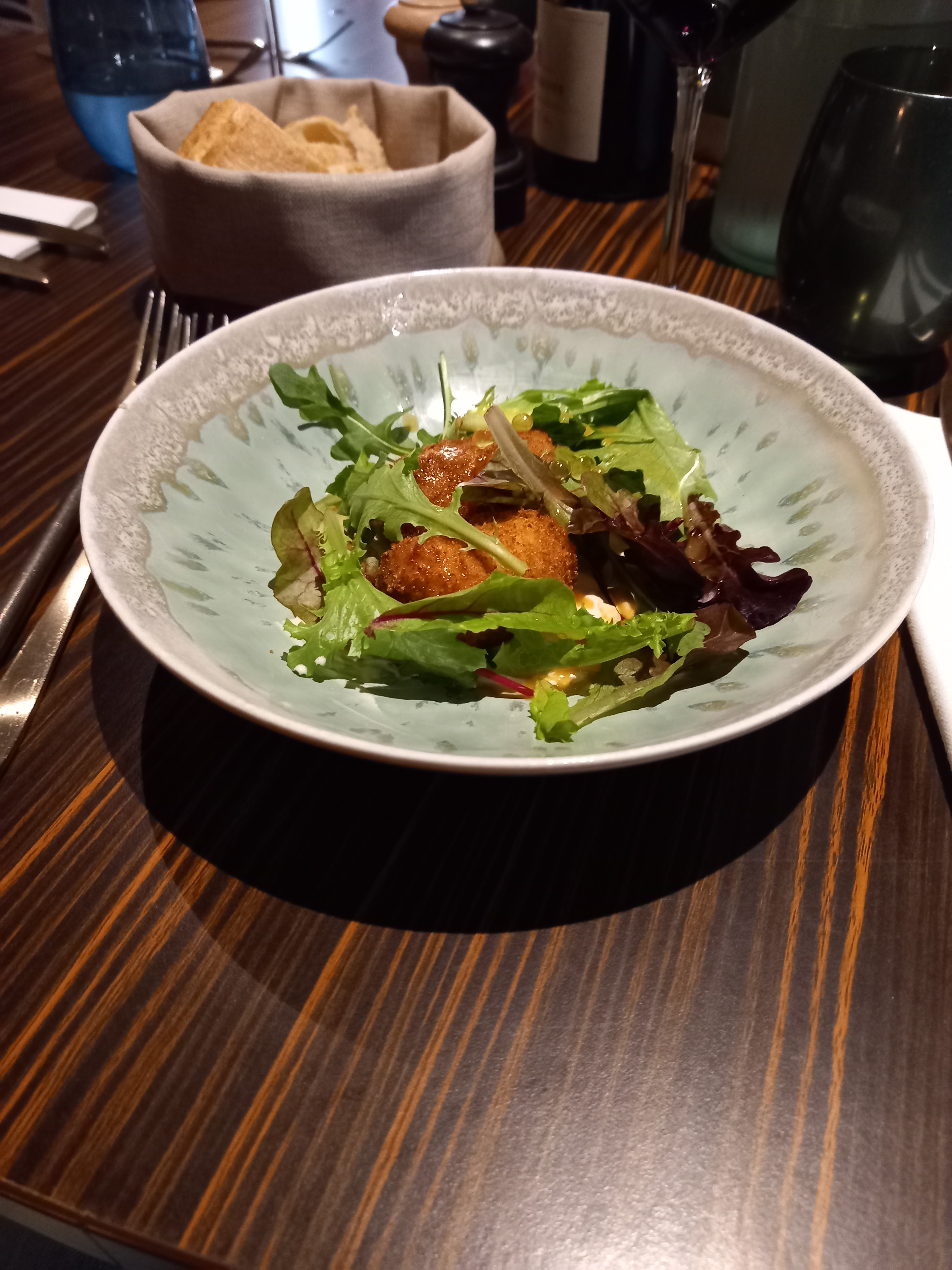 Cadre chaleureux, déco moderne mais cozy. Carte des vins diversifiée, originale et maitrisee autant par notre serveur que par le sommelier :). Carte originale, cuisine de saison, nous nous sommes régalés, tout simplement. Produits frais, de qualité, belle présentation, accompagnements subtils. En bonus ce soir la un petit concert guitare voix parfait pour accompagner une soirée en-tête à tête attendue depuis longtemps!!