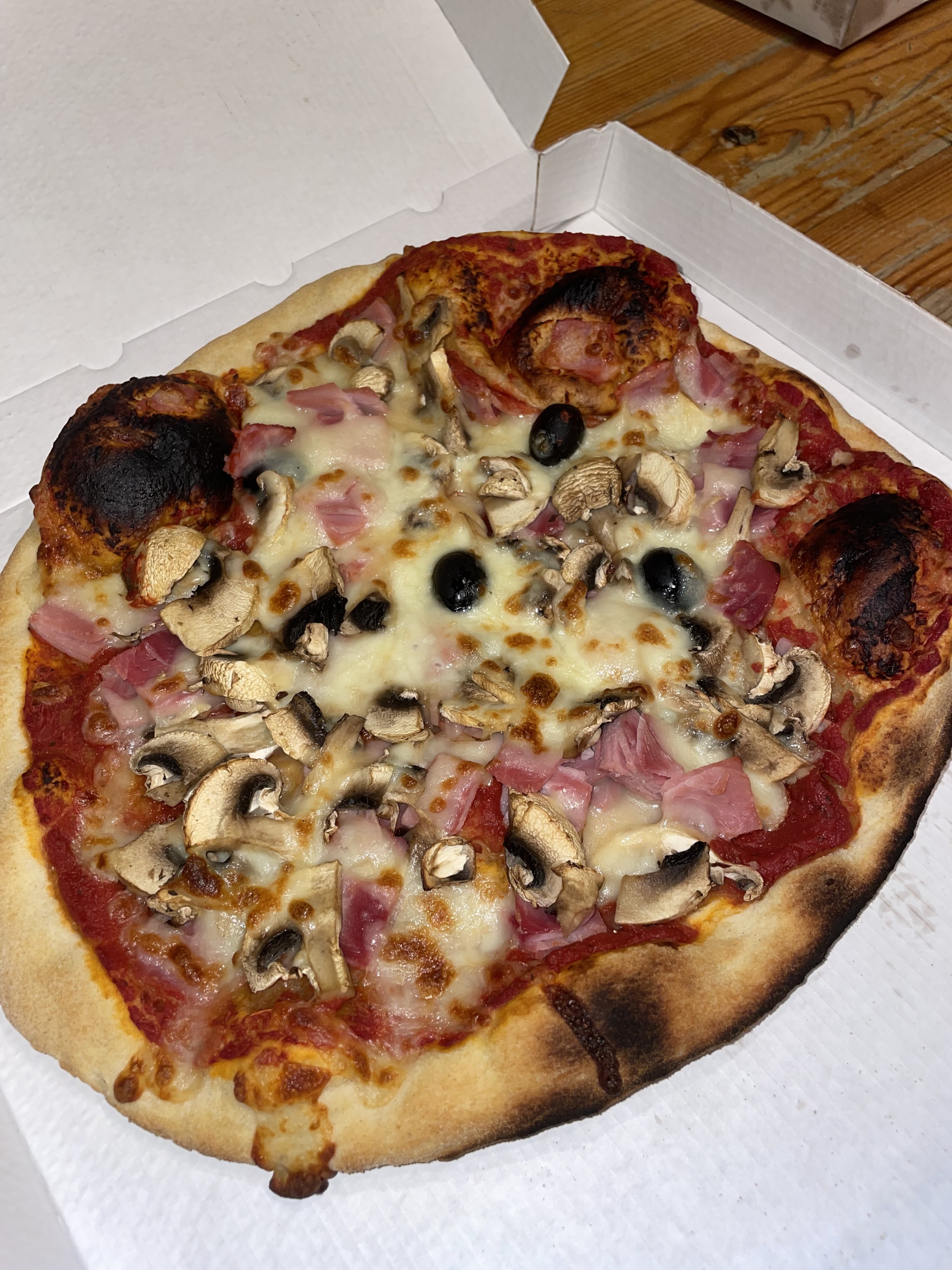 Commande à emporter Bien qu’une de mes deux pizzas soit un peu trop cuite, l’autre était bonne, bien garnie, avec des ingrédients de qualité. Le service était rapide et la note correcte. Je recommande malgré tout.