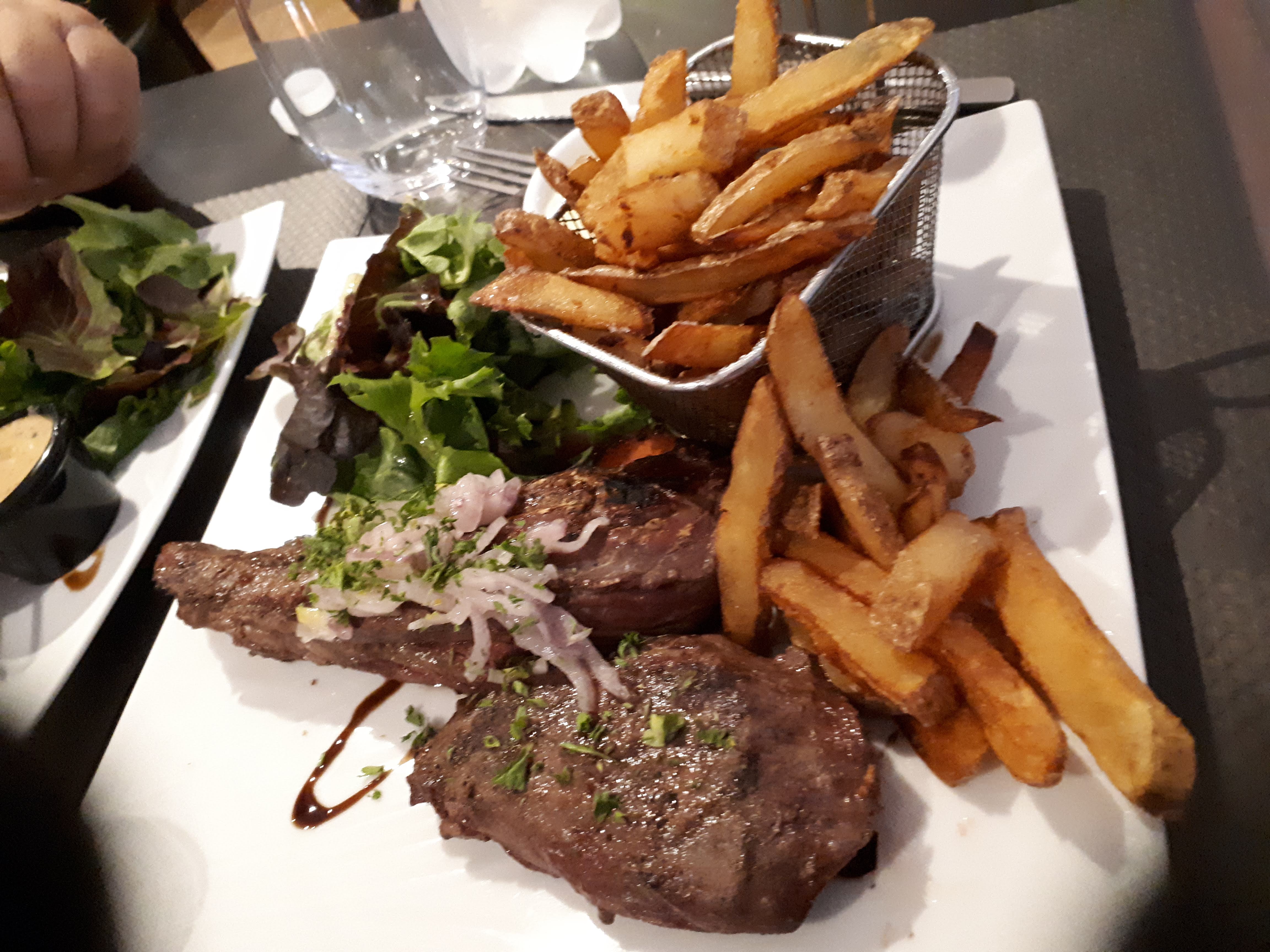 la côte de bœuf de 1kg2 est un peu chere mais vaut vraiment le coup, parfaitement cuite et l'assaisonnement est parfait aussi, les frites sont vraiment bonnes contrairement à celles que j'ai mangé ce weekend.