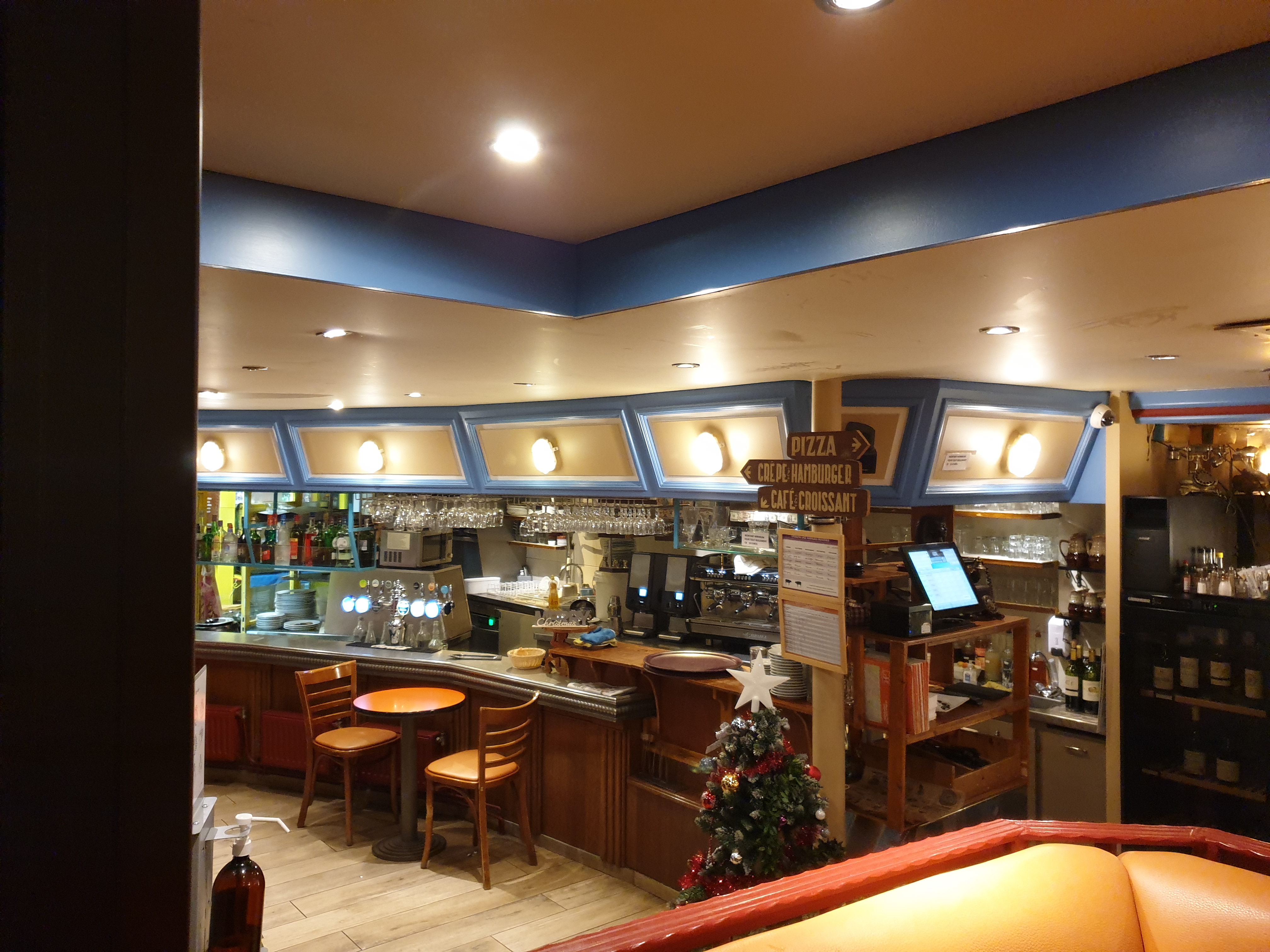 Bistrot populaire Parisien. Crêpes salées non en farine de sarrasin (vraiment moyen et garniture décevante). Pizzas correctes. Service sympathique.