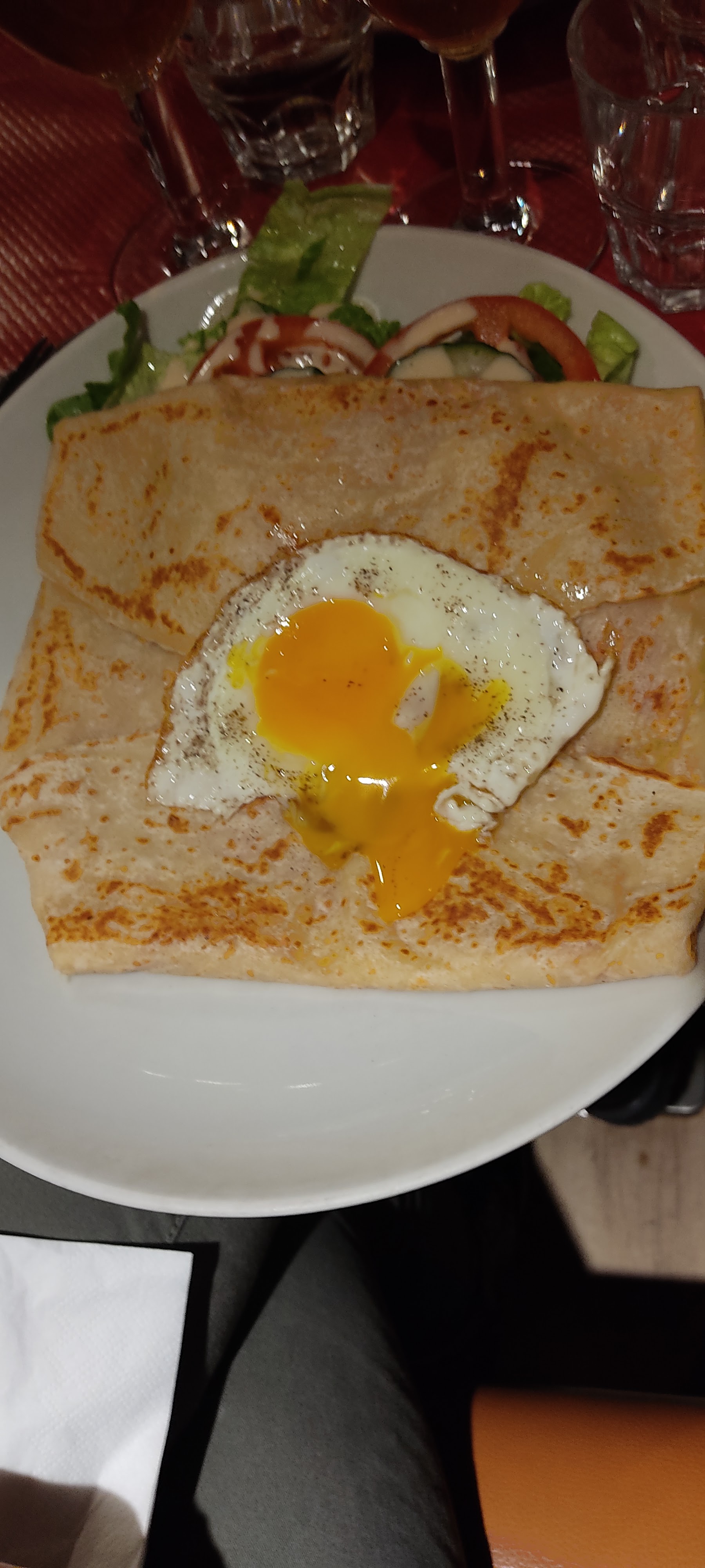 Crêpes insipides, caoutchouteuses, accompagnées d'un quart de feuille de salade plus que défraîchie. Croque madame totalement desséché, imprégné de gras, sur tranches de pain racies. Restaurant à éviter.
