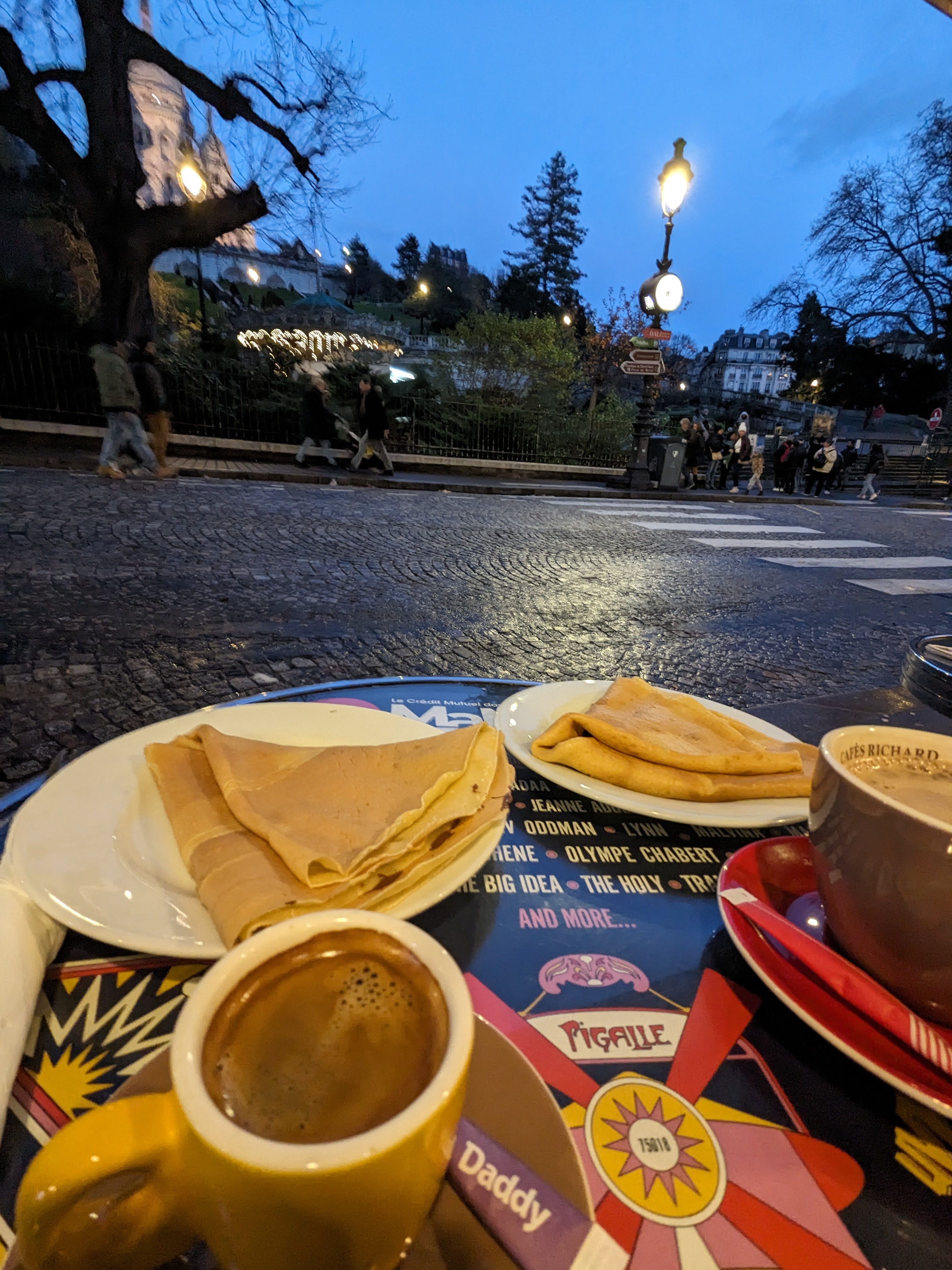 Jolie vue sur le sacré coeur et sur les musiciens qui s'adonnent devant les touristes sur la place à l'entrée du parc, crêpes très bonne comme d'habitude et présentation très jolie et soignée des cafés et chocolat liégeois à prix raisonnable👌 À ne pas rater ! Don't miss it ! as a tourist specially ahah !