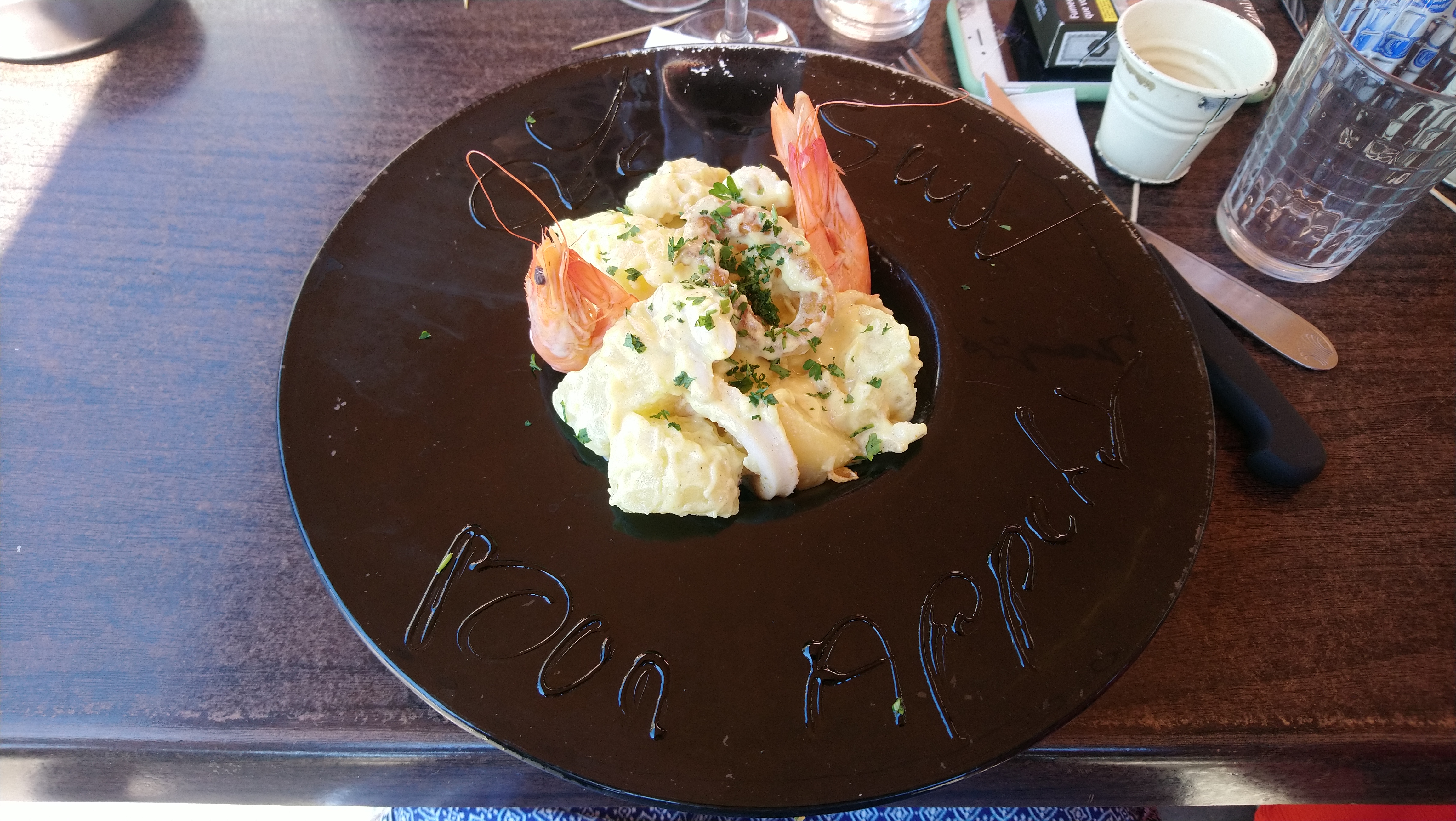 Ça fait 3 soirs que c'est notre cantine et jamais déçu. Ça a commencé avec des moules frites à s'en lécher les doigts (au sens propre) en particulier les moules au Roquefort. Le lendemain, pas très faim, juste un hors d'œuvre : une seiche mayo (ça ne s'appelle pas comme ça) pour ma copine et un tartare du pêcheur (3 poissons) pour moi. Et ce soir seiches grillées et tentacules de poulpe... Au global, tout vaut le coup !