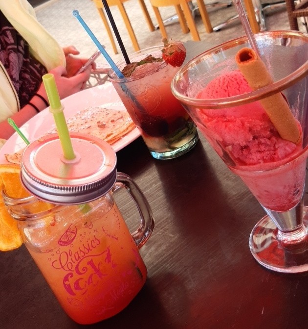 Malgré le beau temps, je n'ai pas pu profiter de mon cocktails tropical ; une dose de rhum démesurée, une fine tranche d'orange, avec un jus multifruit lambda. C'étais bien trop banal pour être festif, en plus d'être assez chère...