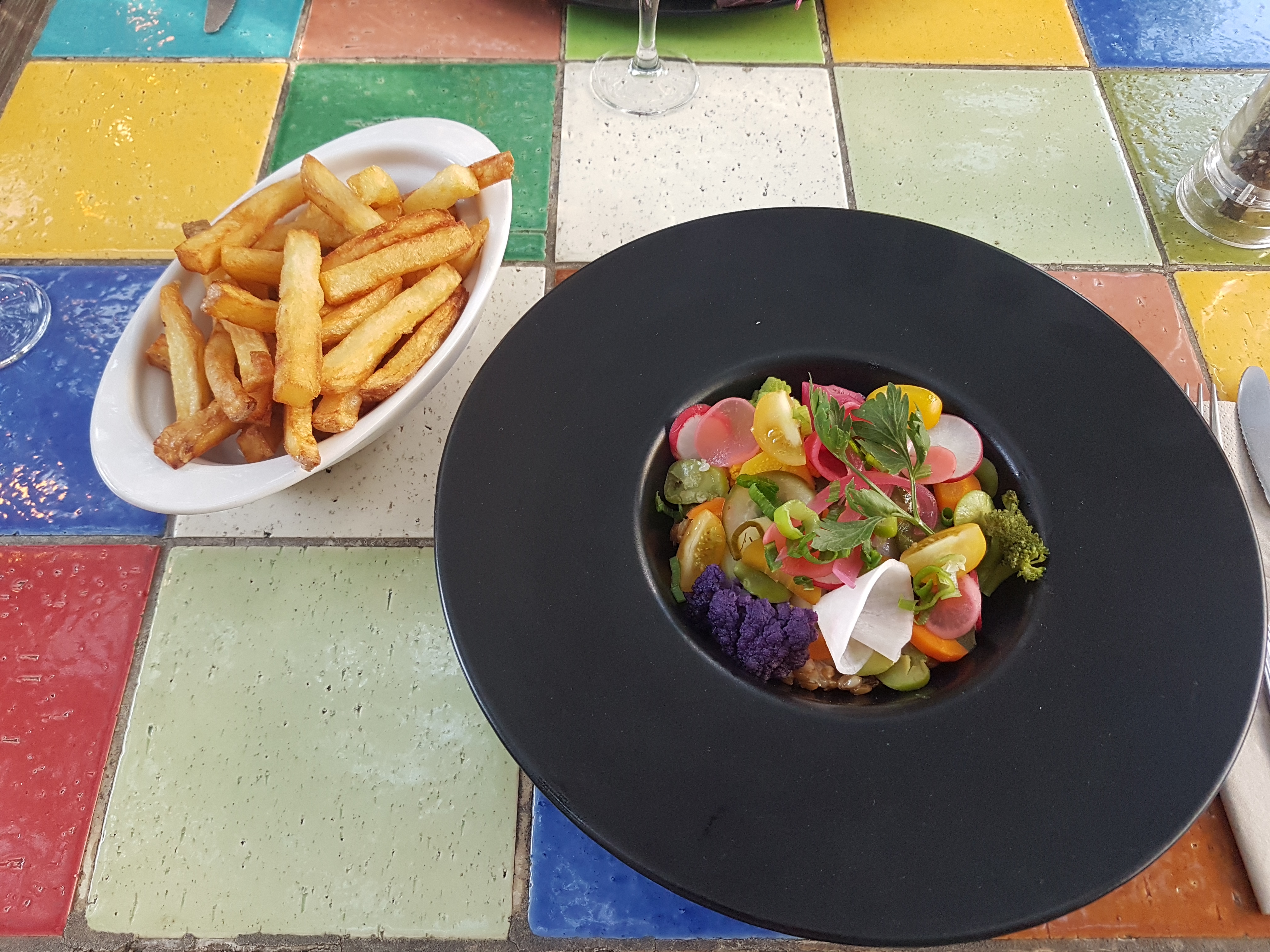 Déjeuner ce midi dans ce lieu intimiste (jour de pluie, pas de terrasse) où nous nous sommes régalés de l'entrée au dessert. Explosions de couleurs, de saveurs et découvertes culinaires. Nous recommandons sans hésiter ce lieu magique