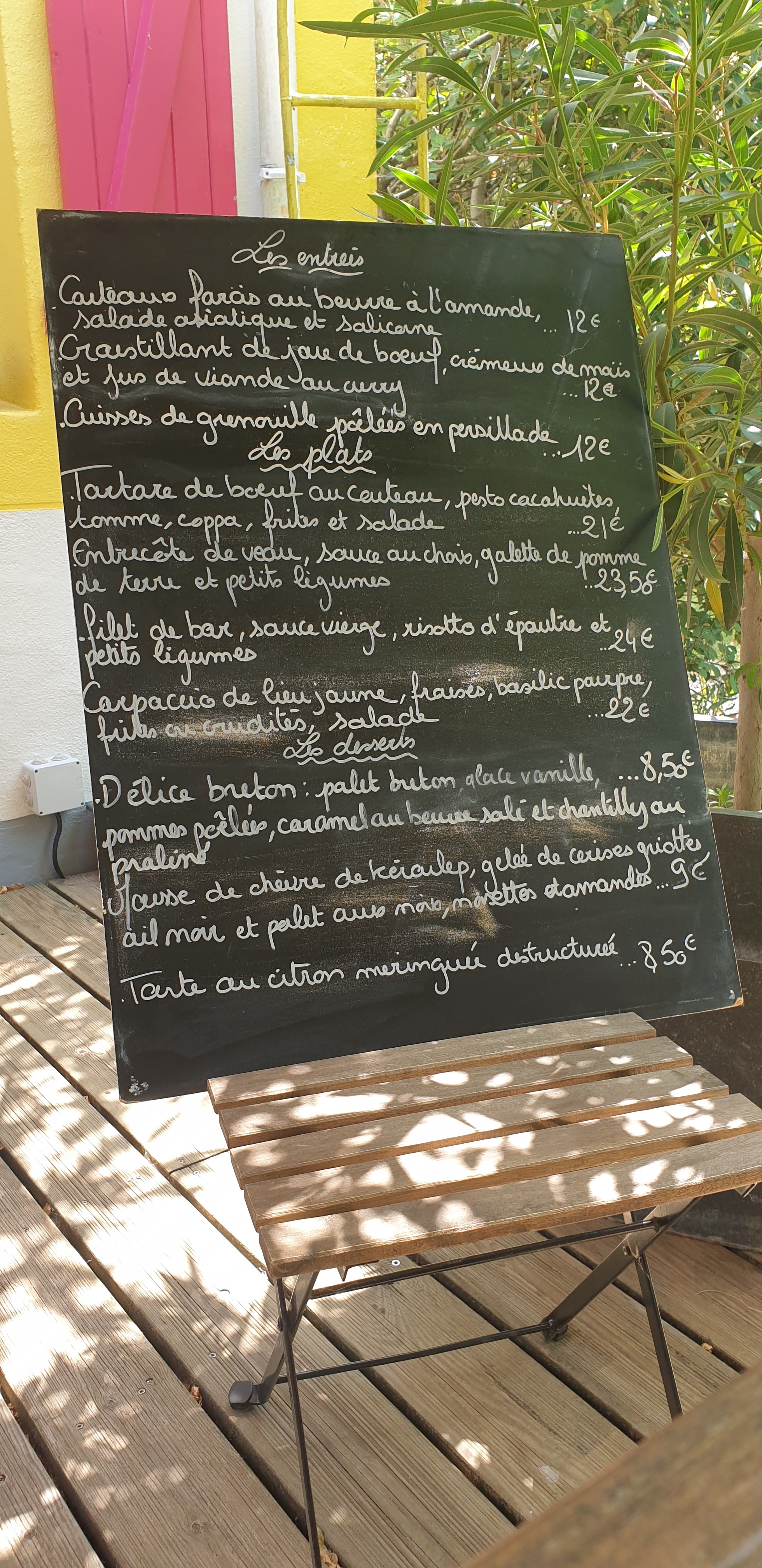 La terrasse ombragée à l'arrière était très agréable. L'entrée, le plat et le dessert composées de saveurs fines et bien maîtrisées sans oublier une touche d'originalité. Meilleur resto du séjour !