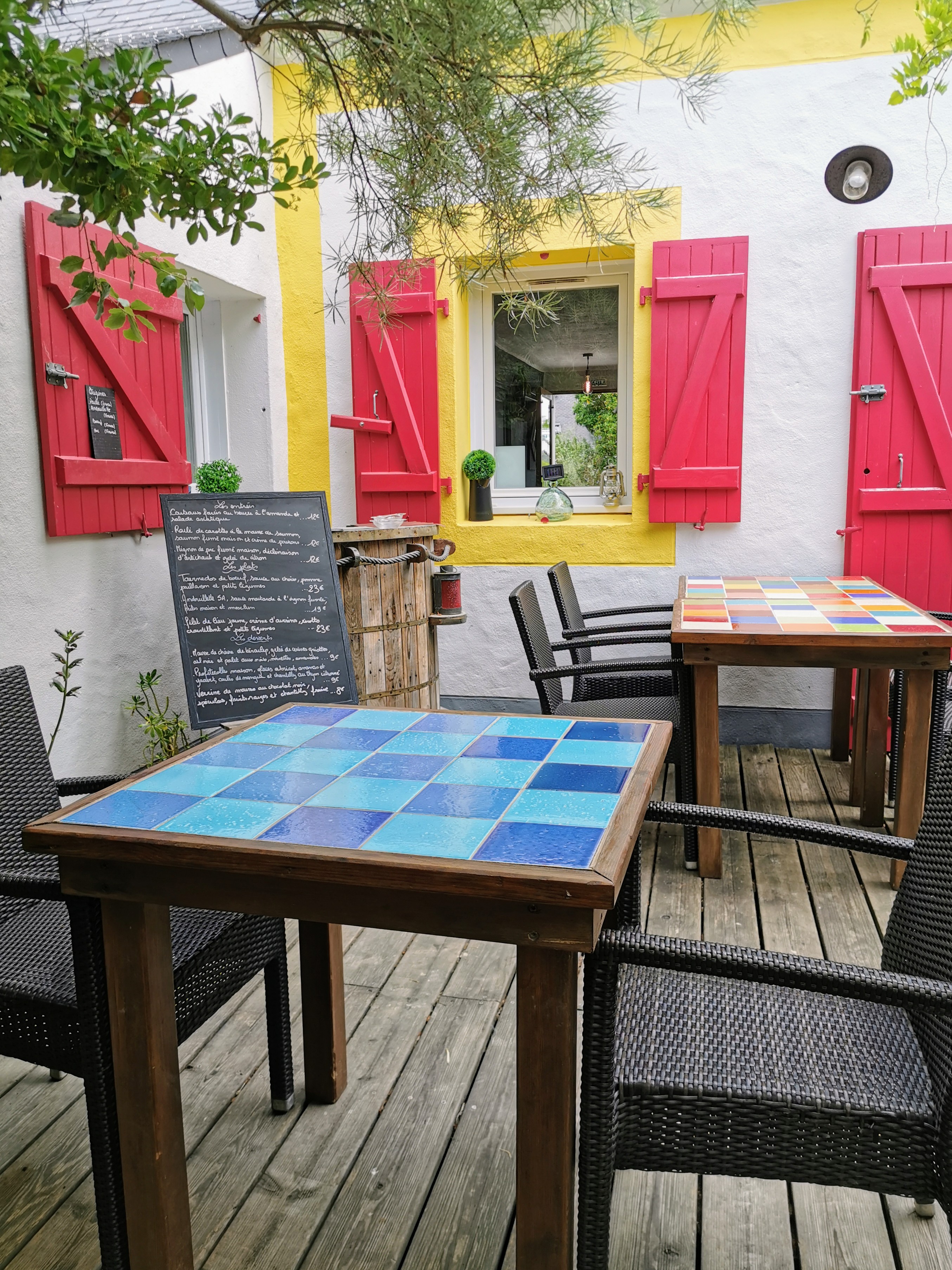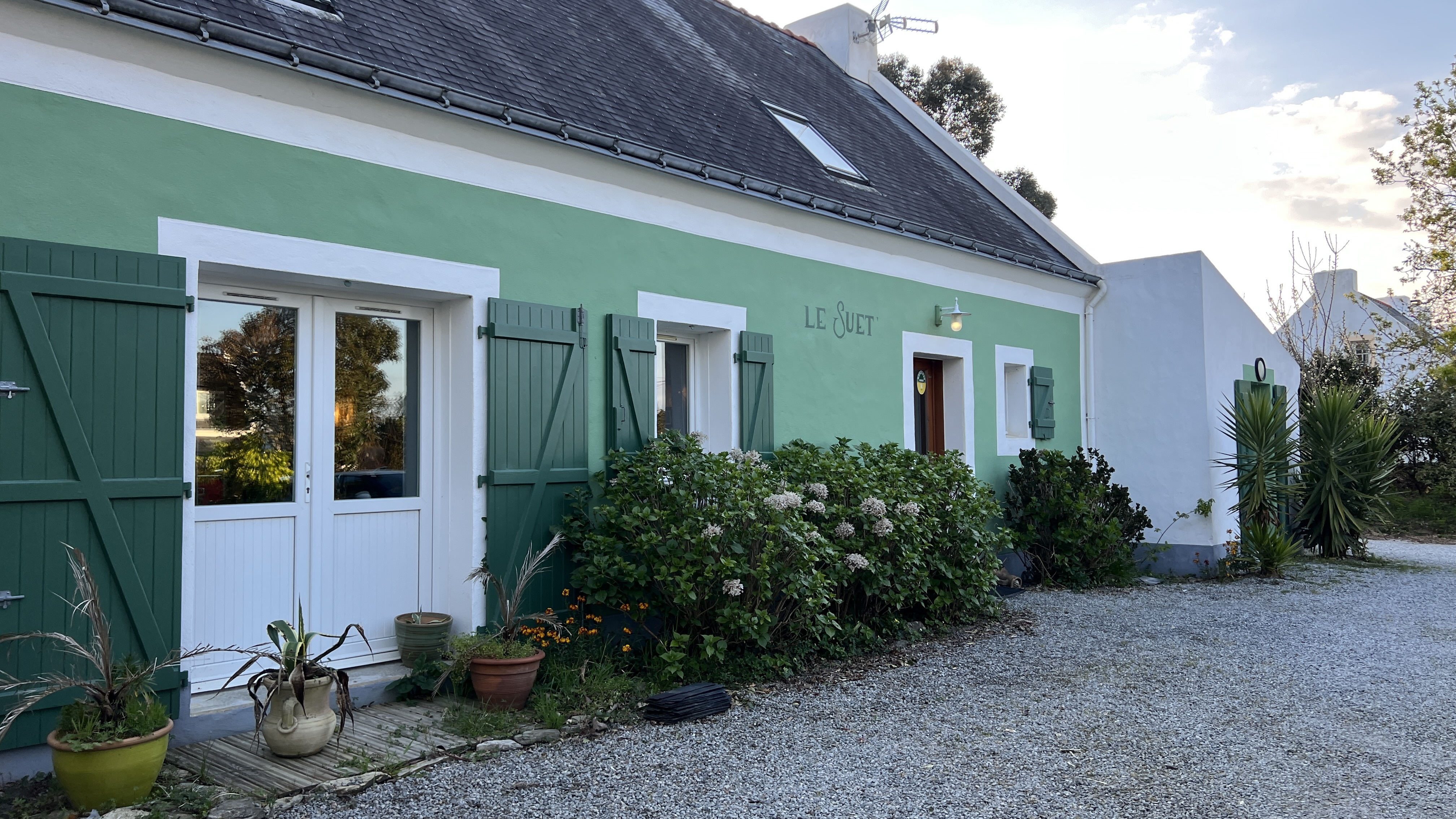 Belle terrasse ombragée au calme , très bonne cuisine , très belles assiettes , personnel très sympathique . Ne passez pas à Locmaria sans vous arrêtez au Suet , vous ne serez pas déçu ! Un vrai plaisir !!!