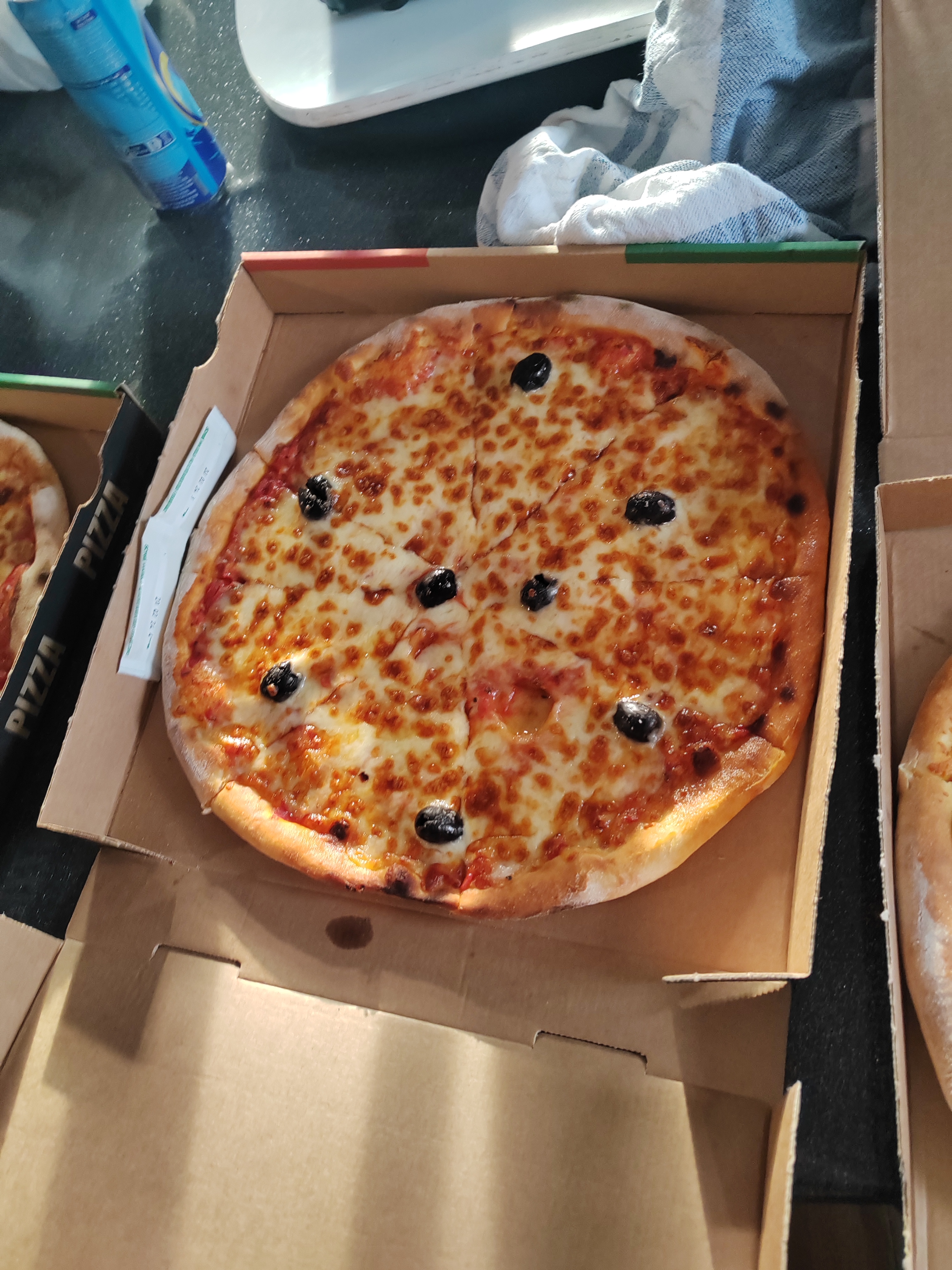 Super pizza le seul probleme et qui m'arrivent souvent manque 1 ingredient pour la pizza crousty quinet ma favorite et le vendeur me previen jamais qu'il manque l'ingredient pour savoir si je souhaite laisse comme sa ou mettre un autre ceci et pas normal car un ingredient en moin dan une recette change tout le gout que se soit poivron ou olive la difference on la sent donc minimum prevener le client merci