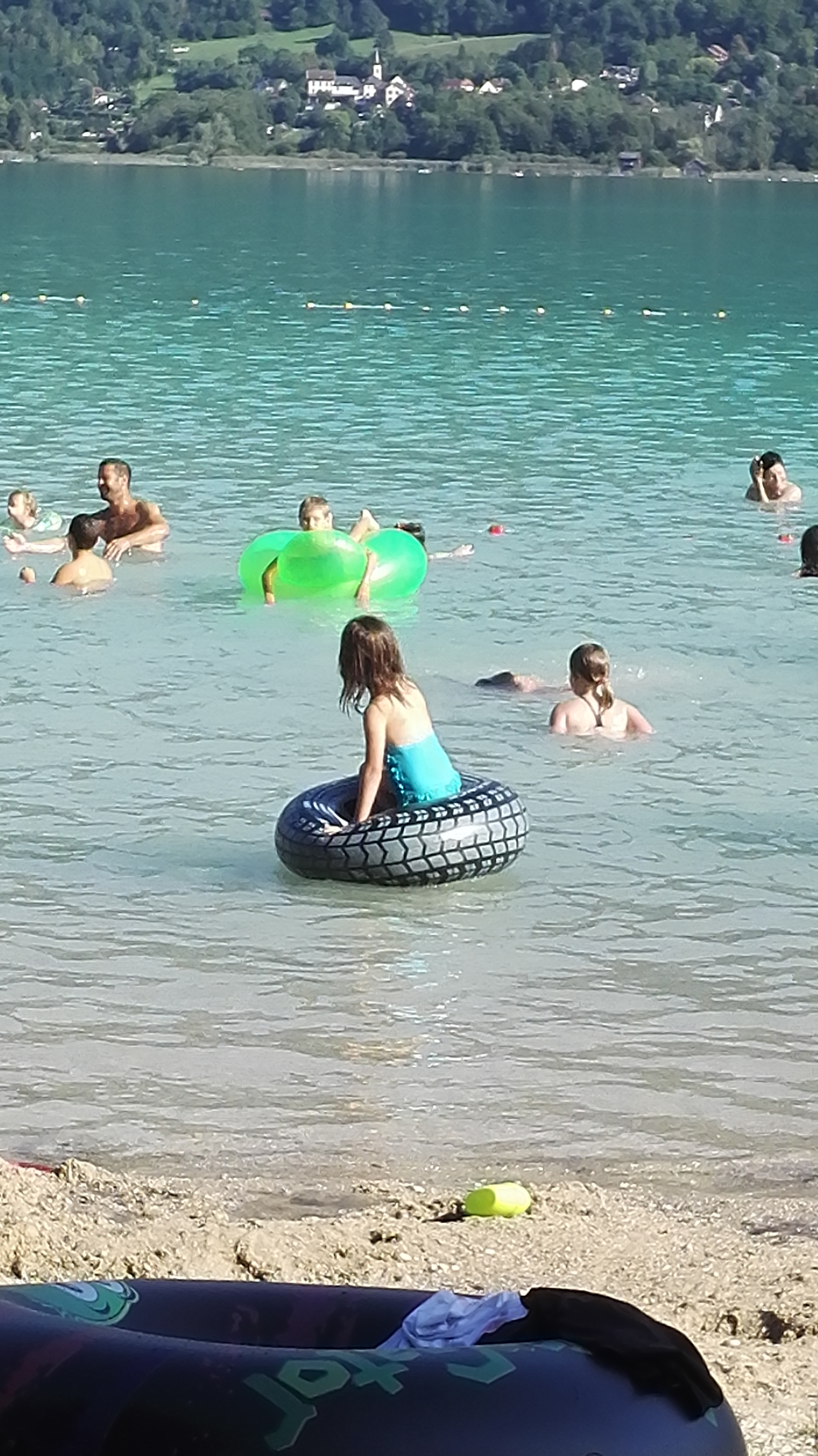 Superbe plage familiale moins encombrée que les autres plus connues. Un espace jeu pour les enfants, des espaces verts pour pique-nique , un bar plage. Ce lac est avant tout le plus propre et le plus chaud d'europe :) À noter ces beaux paysages entourés de montagnes..