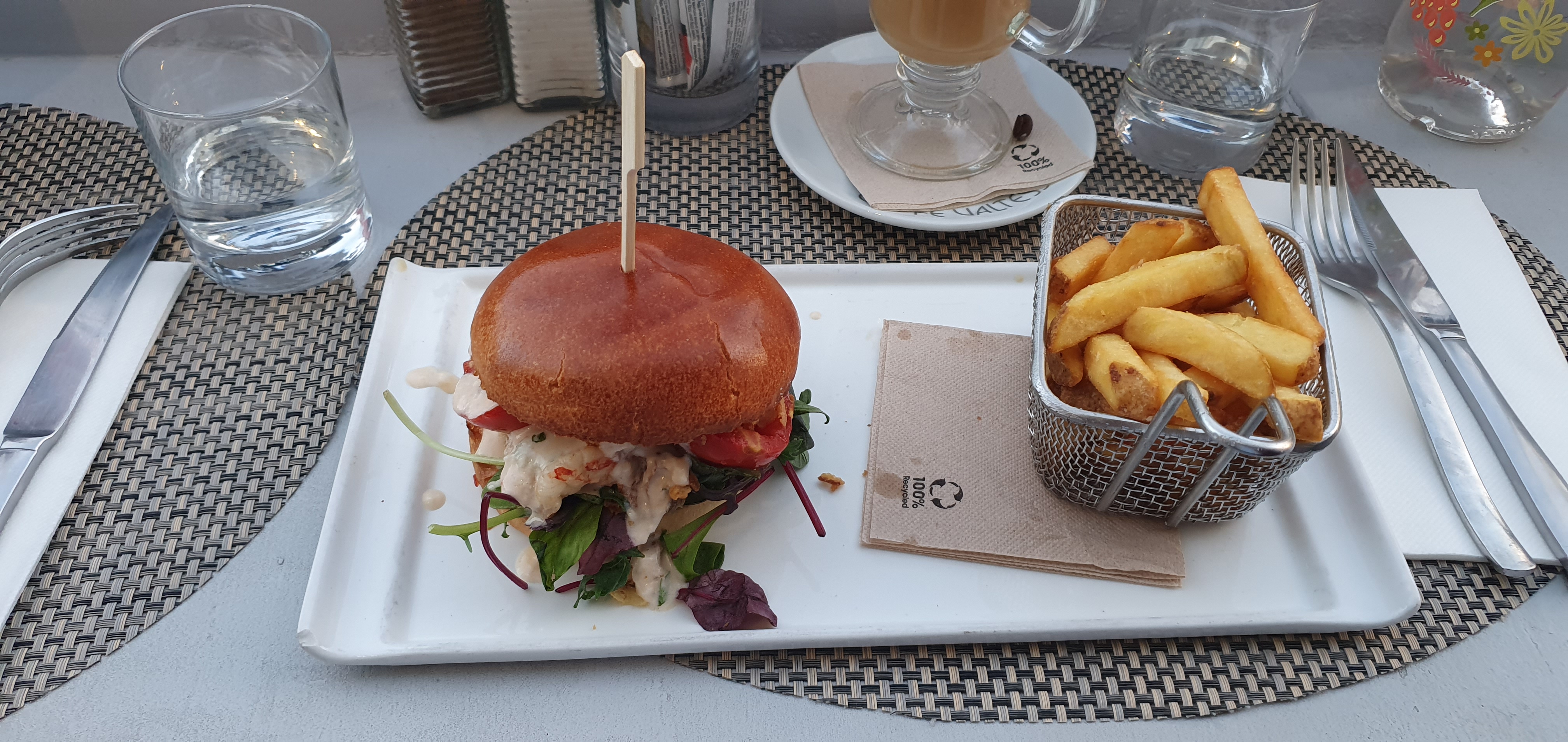 Burger vegan très bon, la galette de légumes et le fromage vegan sont tops ! La portion de frites est un peu légère pour le prix un peu élevé (mais qui correspond aux prix de Nice). La vue est magnifique et le service est agréable. Je recommande.