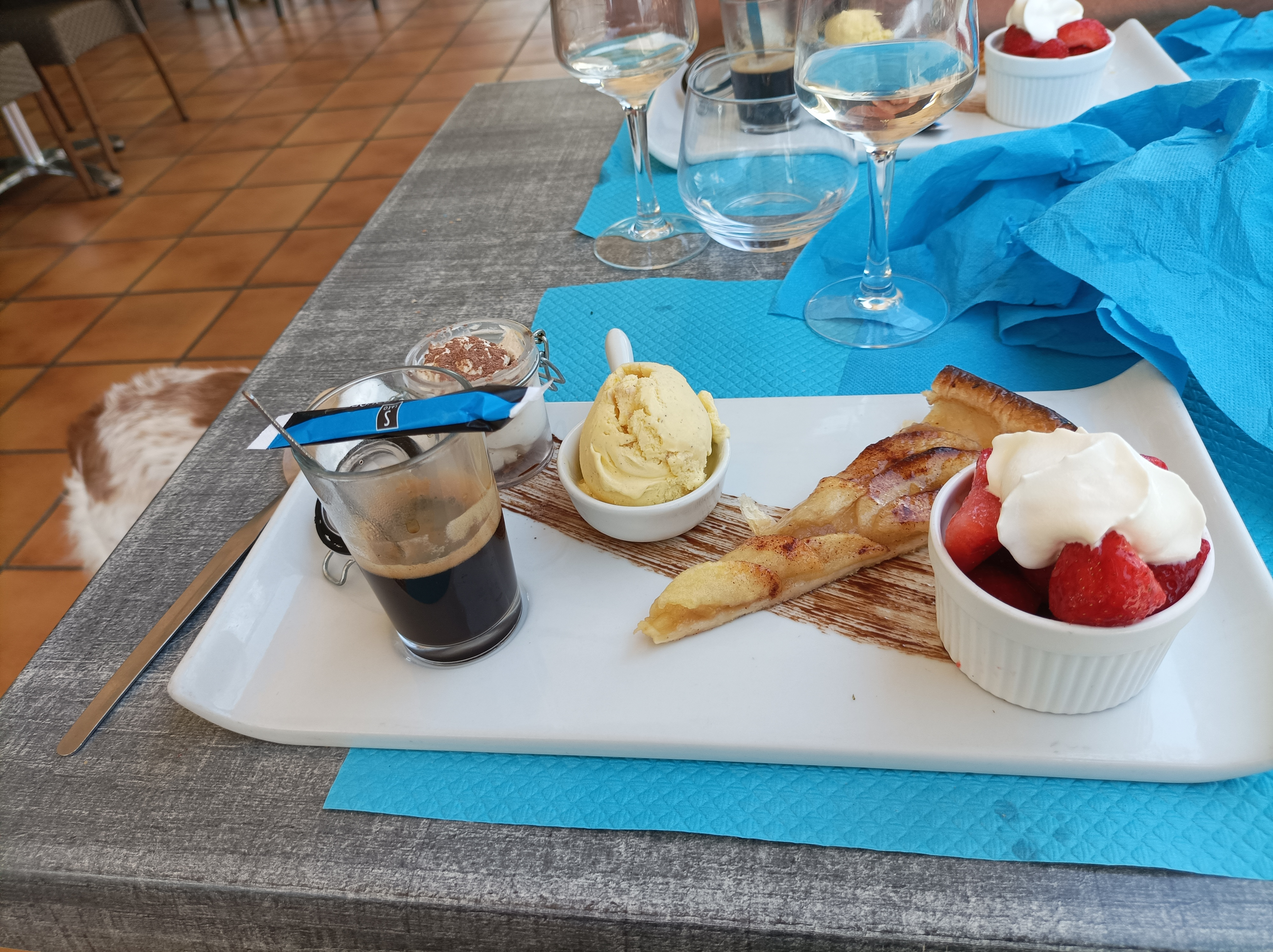 Super déjeuner de fin de saison entre amis sous les pins , aïoli traditionnel et généreux , pommade à volonté et vrai café liegeois. Service sympathique Une belle découverte et un bon moment à renouveler