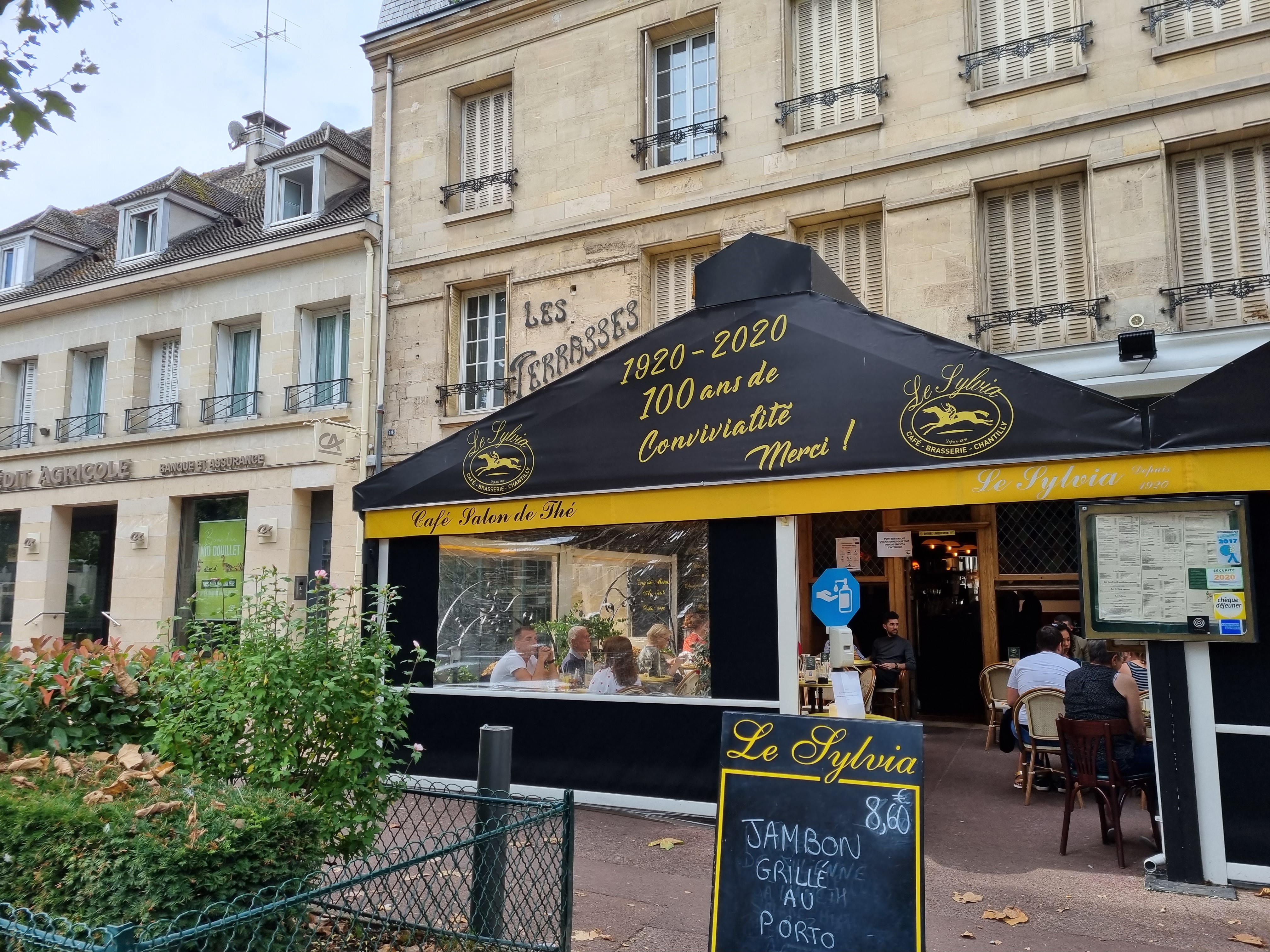Petit établissement (bar/brasserie) situé sur une des grandes artères de Chantilly, facile à identifier et localiser. Places de parking à proximité, mais pas forcément libres à cause du passage. Belle terrasse protégée. Accueil très chaleureux, non démenti jusqu’à notre départ. Service souriant et discret, efficace et rapide même en plein boum mais avec le bon mot. Professionnel type parisien. Aperitifs, Cocktails, bonnes bières à la pression et large choix de vins au verre(s), à la carafe ou à la bouteille. L’eau du robinet est bonne. Possibilité d’accompagnements avec l’apéritif. Rien à redire. Côté plats, tout est fait maison avec des produits frais. Carte classique de brasserie, avec plat du jour, mais variée avec une mention spéciale pour ses trois assiettes de viandes froides servies avec une mayonnaise à tomber. Présentation soignée, aussi bonne qu’appétissante. Généreux. On a vu passer des burgers et des assiettes de filet mignon à la moutarde qui donnaient presque des regrets. Desserts intégralement maison dont la chantilly bien sûr. Une mention spéciale à leur tiramisu et à leur mousse au chocolat parfumée à la fleur d’oranger (une tuerie). Je conseille le café gourmand qui vous permettra d’en goûter plusieurs. Café de qualité. Le gros plus, c’est le prix qui reste très abordable; ce qui n’est pas forcément le cas aux alentours. Conseillé par les gens locaux, le Sylvia se révèle être une institution depuis plus de 100 ans qui mérite bien, à mon avis, son succès et sa pérennité. Une très bonne adresse. Nous y reviendrons avec plaisir.