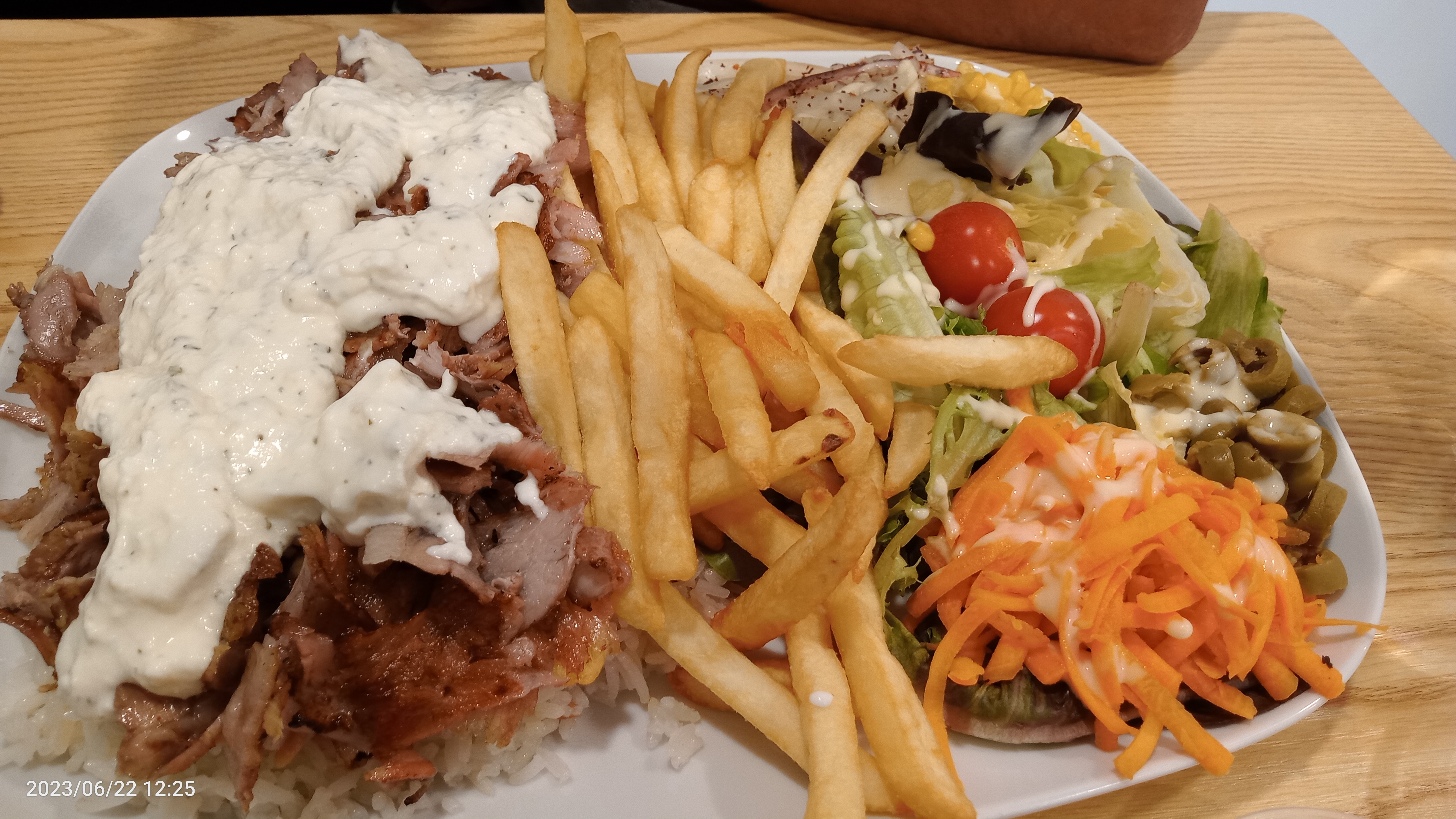 J'ai pris une assiette kebab. Le plat était très copieux, les serveurs étaient sympa. La viande est très bonne avec son goût fumé, on sens bien le goût du barbecue. Je valide.
