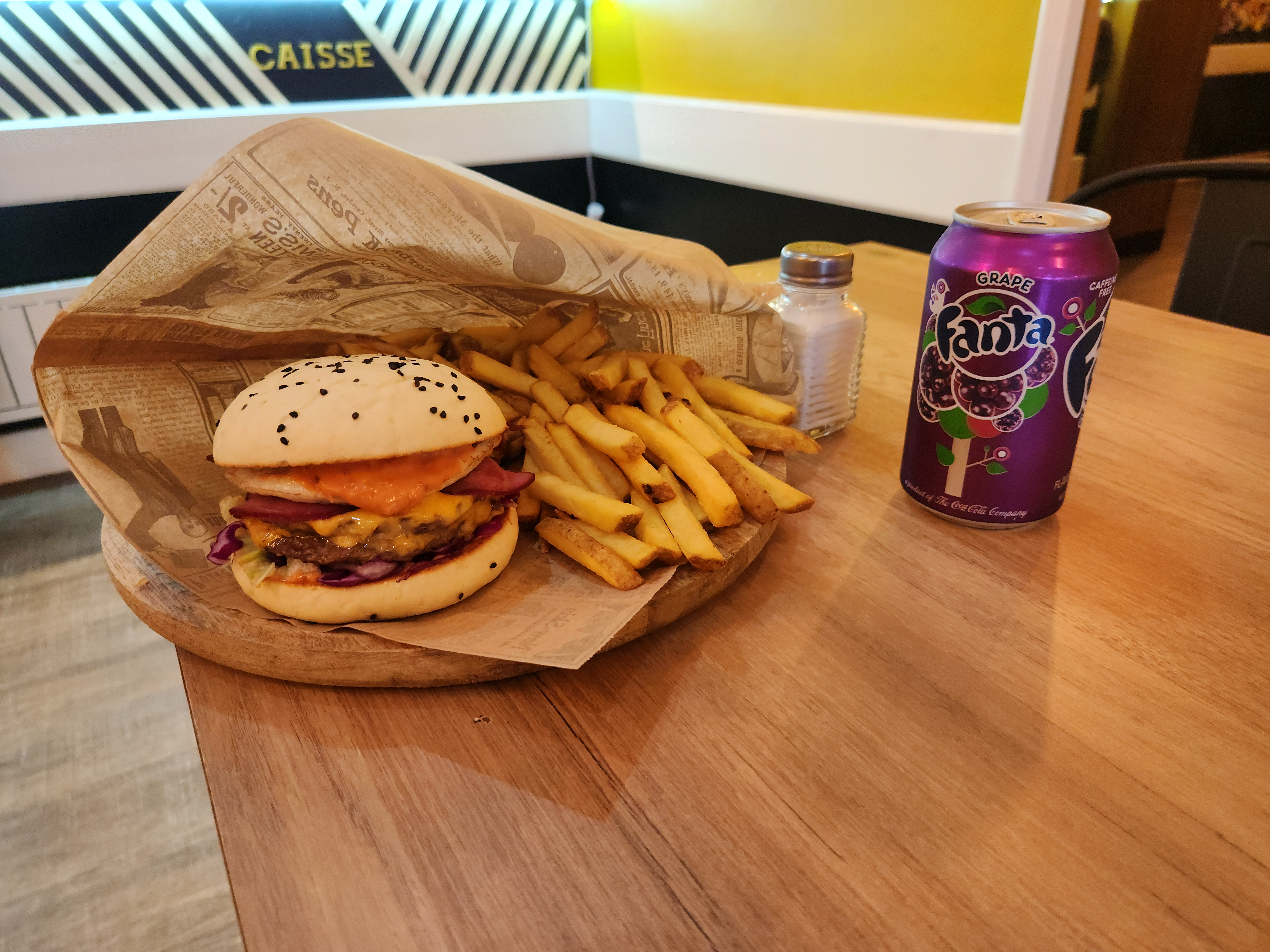 Le vendeur est extrêmement sympathique et les burgers sont faits à la commande (Il peux y avoir un petit temps d’attente, mais cela vos le coup). Cependant la salle bien que joliment décoré n’a pas souvent de client mangeant sur place et le restaurant n’a pas beaucoup d’ambiance (Ce qui permet de manger dans le calme).