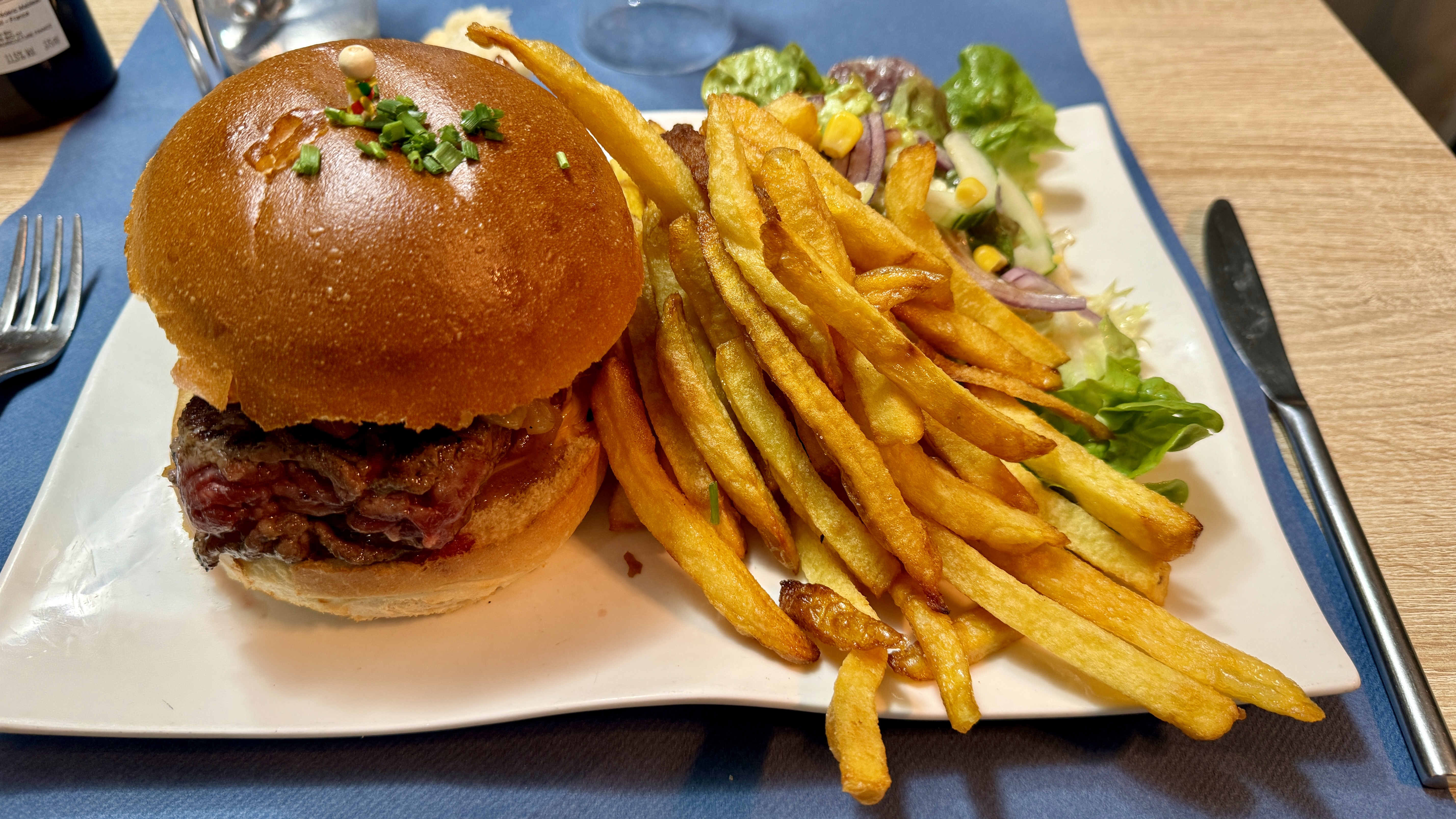 Nous avons mangé de merveilleux hamburgers avec de la bonne viande et des frites croustillantes accompagnées d'une mayonnaise maison. Le personnel est accueillant et souriant. J'y retournerai volontiers. Merci à toute l'équipe du restaurant Le Tablier