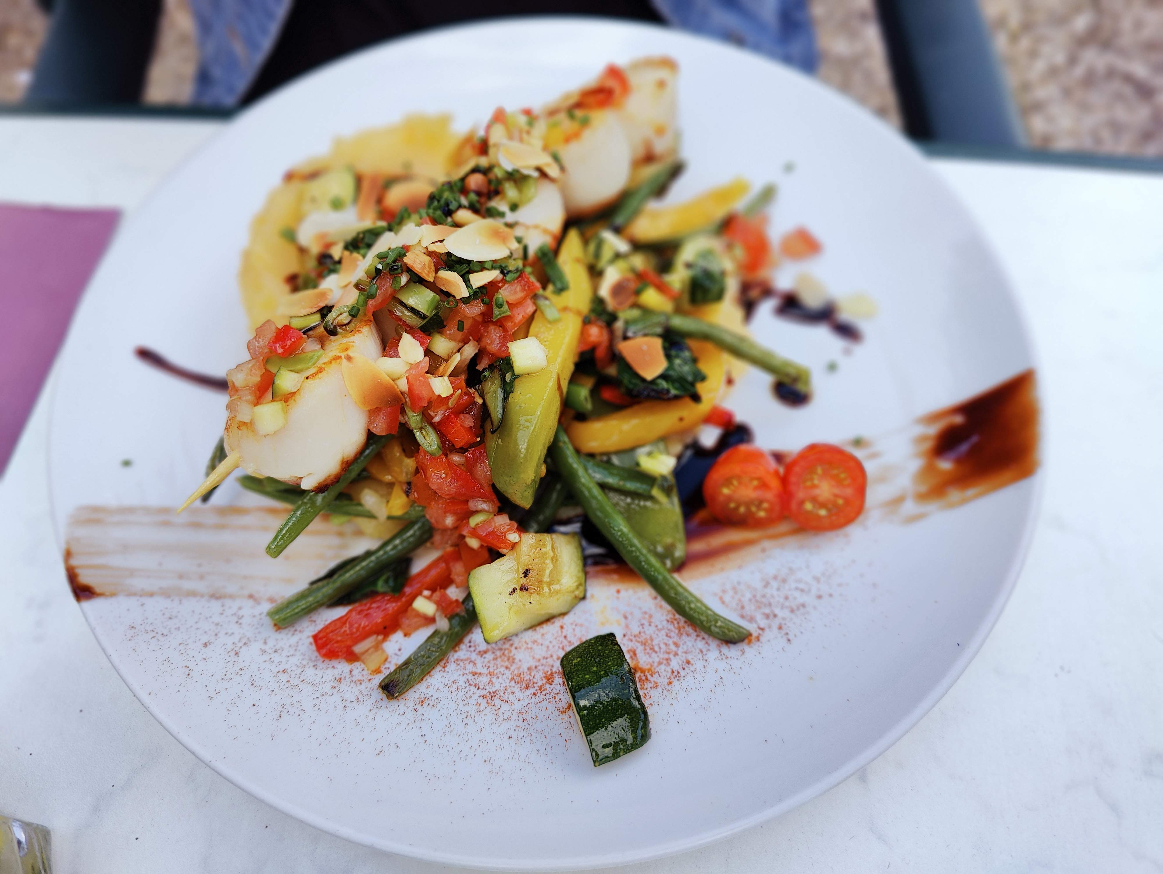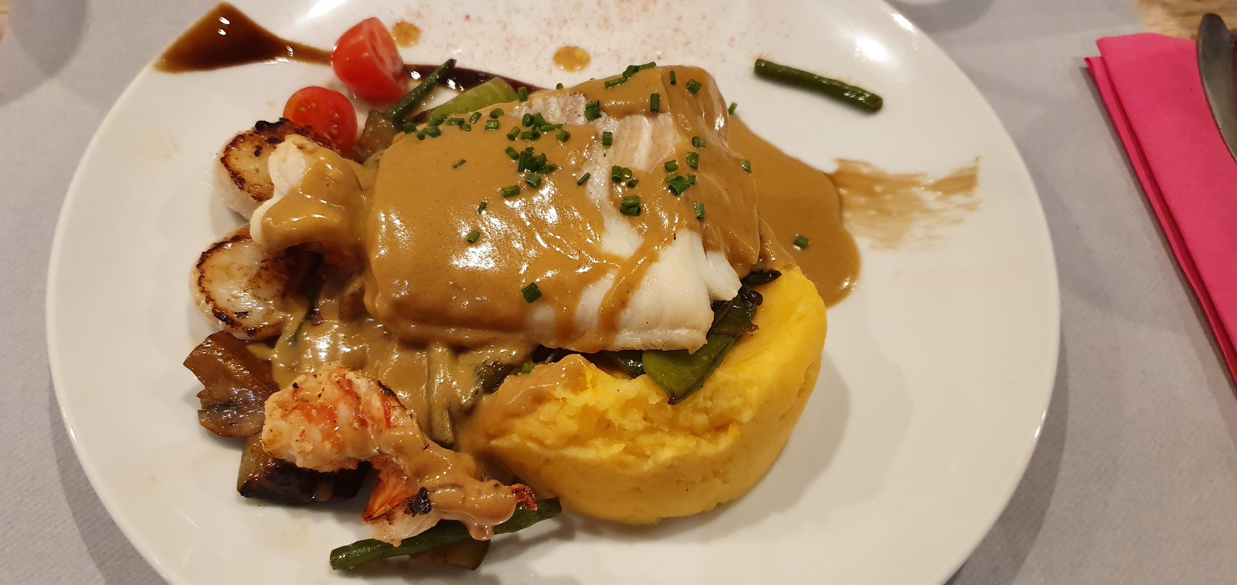 Très bel endroit que je recommande pour la qualité des produits et le professionnalisme des serveurs. Mes amies ont pris en entrée Le Croustillant de chèvre qui était très bien garni et appétissant. Puis, nous avons choisi la brochette de St Jacques accompagnée d'une purée de pommes de terre maison et de ses petits légumes. Très savoureux ! Et pour finir, un café gourmand !... très gourmand !! Malgré l'ambiance un peu bruyante due à une mauvaise acoustique de la salle, nous avons passé un agréable moment.