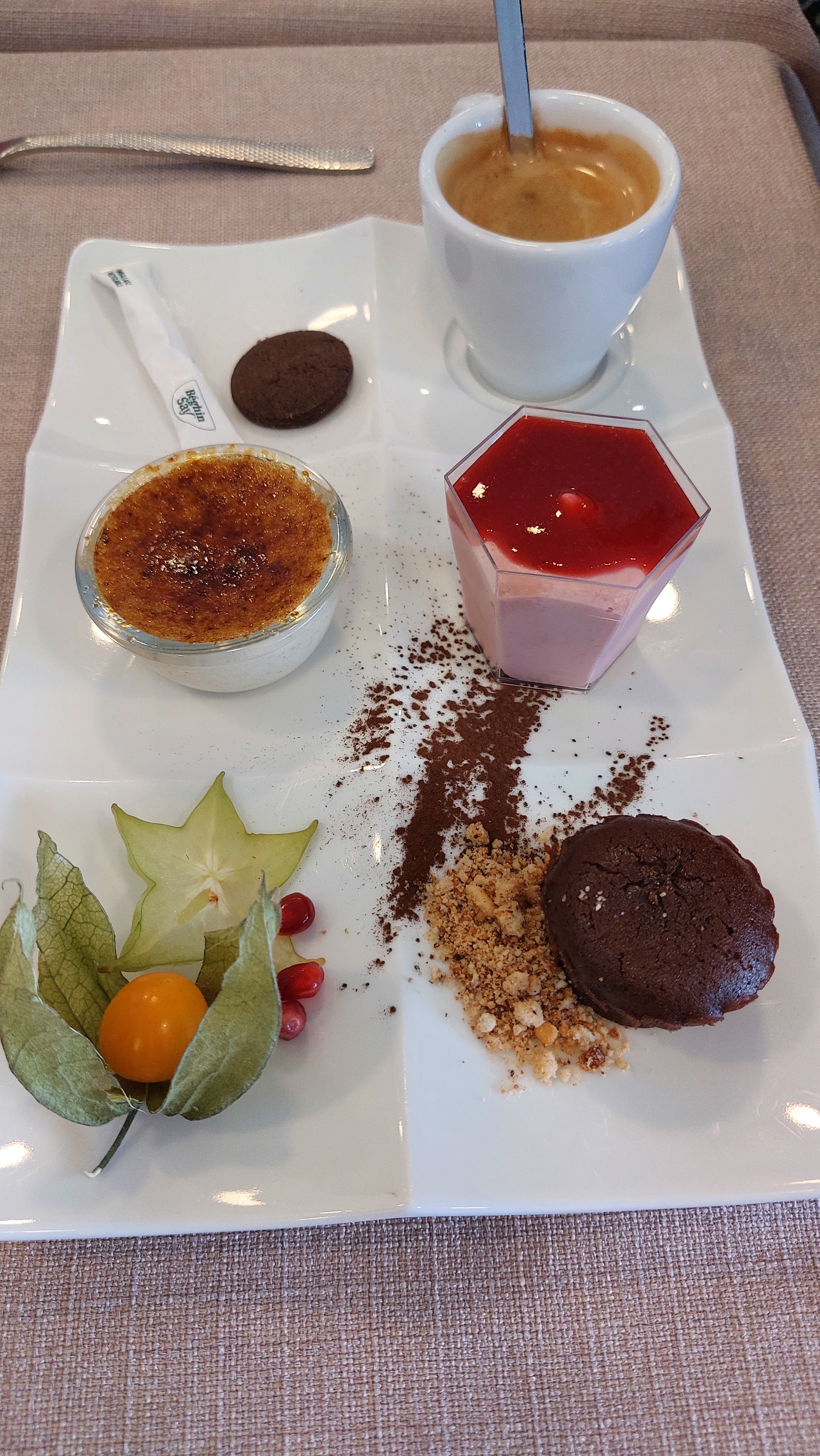 Repas excellent de l'entrée au dessert. Personnel trés professionnel et vraiment à la hauteur. Je recommande.