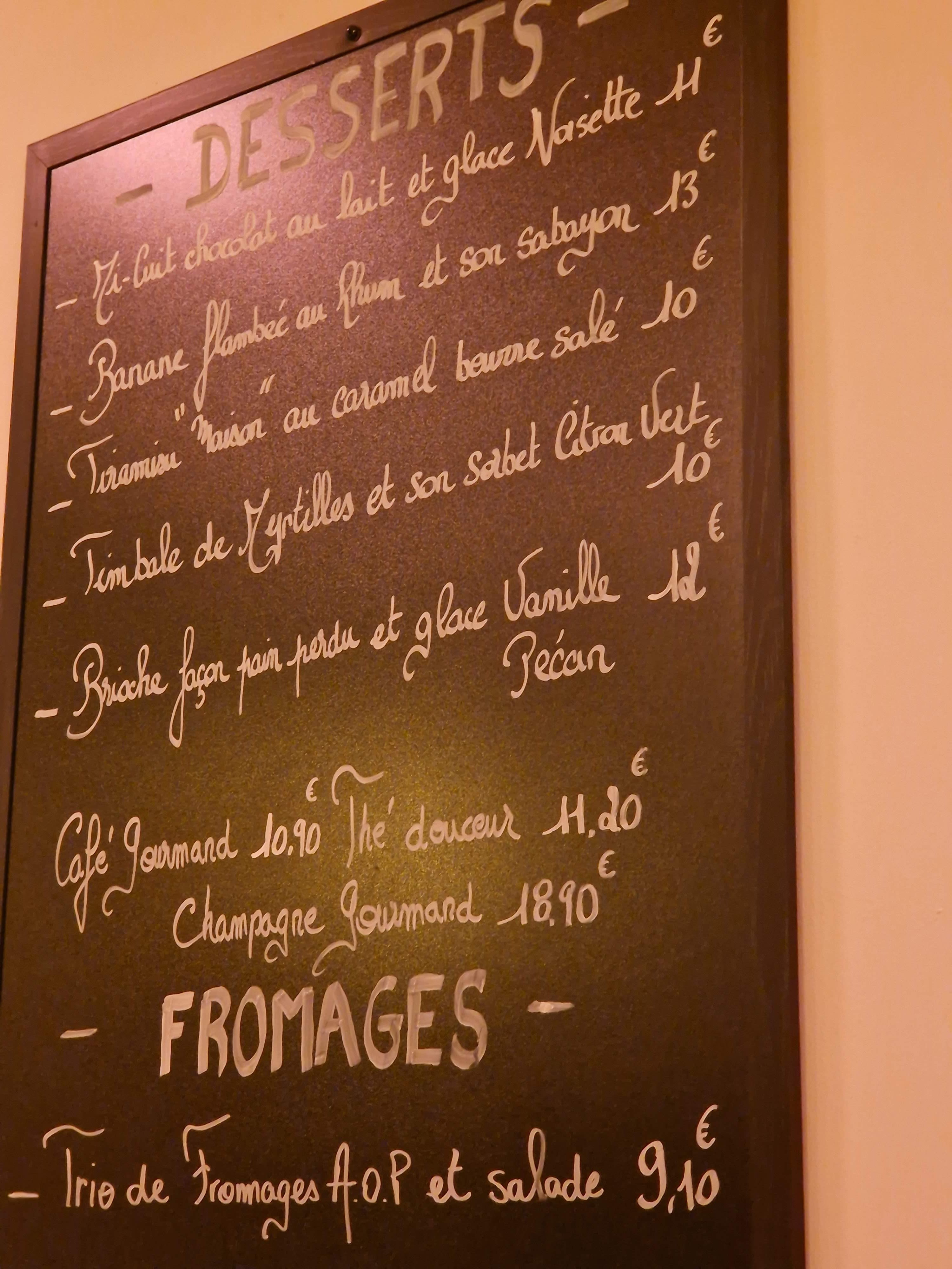 Des plats classiques et typiques de la gastronomie française. Bon rapport qualité prix. L'énoncé du menu correspond parfaitement à ce qui arrive dans l'assiette. Accueil agréable et souriant