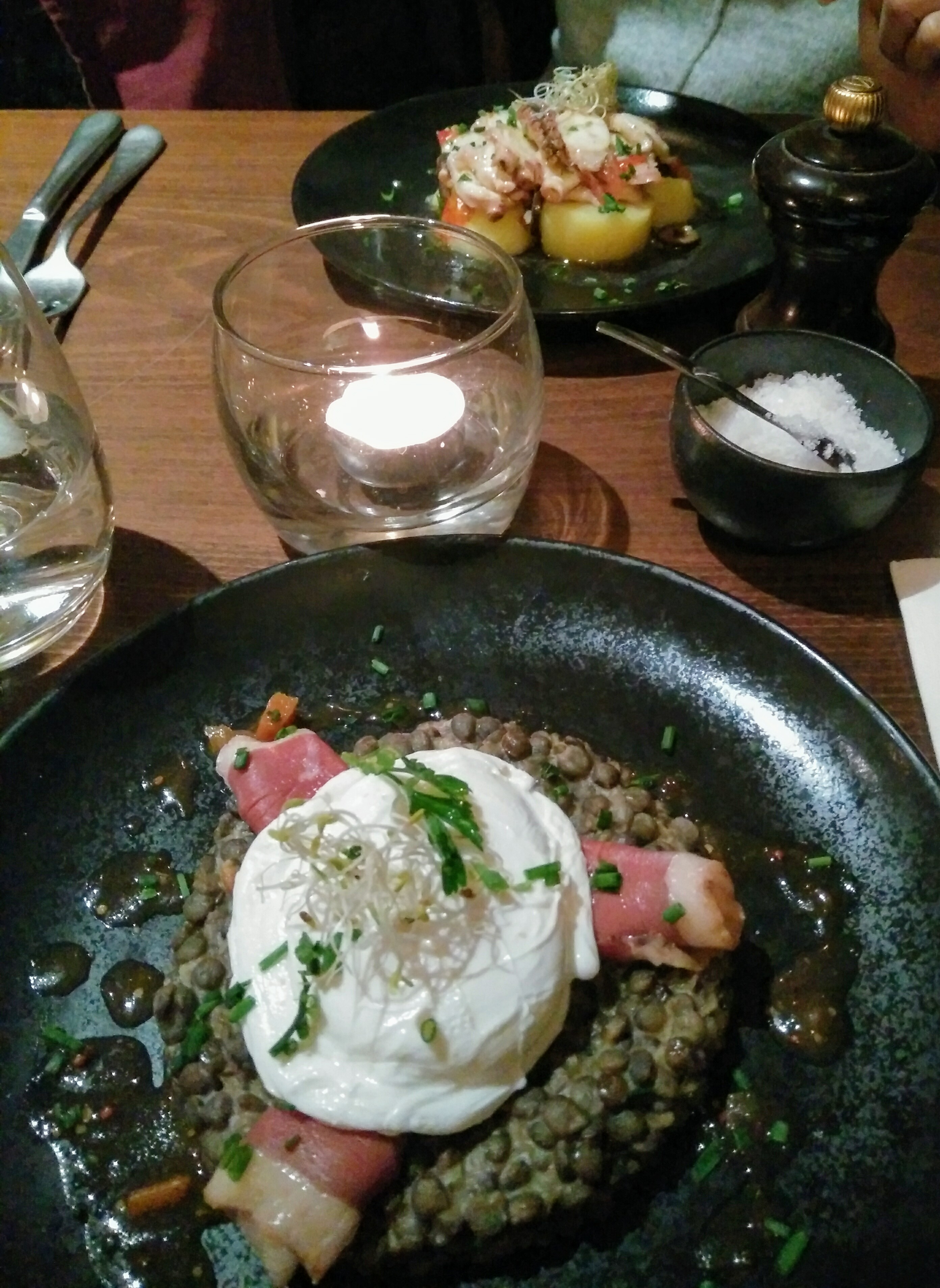 Une très jolie adresse pour bien manger à un prix correct. Cuisine française travaillée avec quelques influences italiennes, je pense surtout à la salade de poulpe en entrée et quelques touches de chorizo dans les plats. Les cuissons sont parfaites que ce soit pour l'œuf poché, la viande, le poisson ou encore les lentilles tout juste croquantes, c'est un vrai plaisir ! Il y a aussi de belles bouteilles de vin.