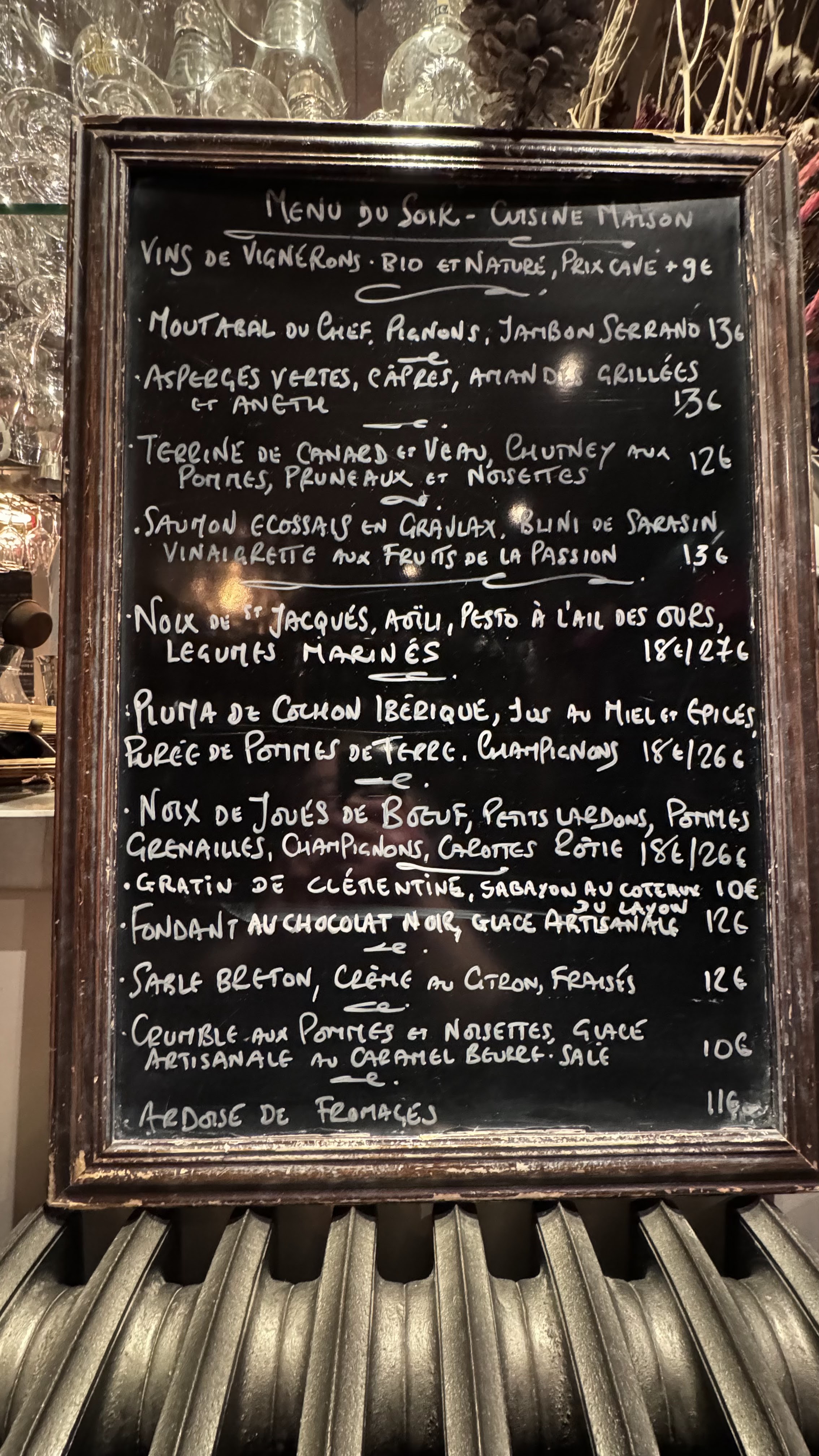 C'était le premier restaurant que mon fils et moi avons visité à Paris. très petit, intime et incroyable. Nous avons commencé le dîner avec une coupe de champagne maison, parfaitement sec et équilibré. Ils ont proposé une option de 3 plats à un prix très raisonnable. et l'hôtesse a pu nous guider vers le vin parfait pour accompagner tous nos cours. La nourriture était parfaite et simple, avec une touche espagnole et une cuisine française classique. Je recommanderais absolument ce restaurant à tous ceux qui recherchent une expérience incroyable avec la cuisine parisienne.