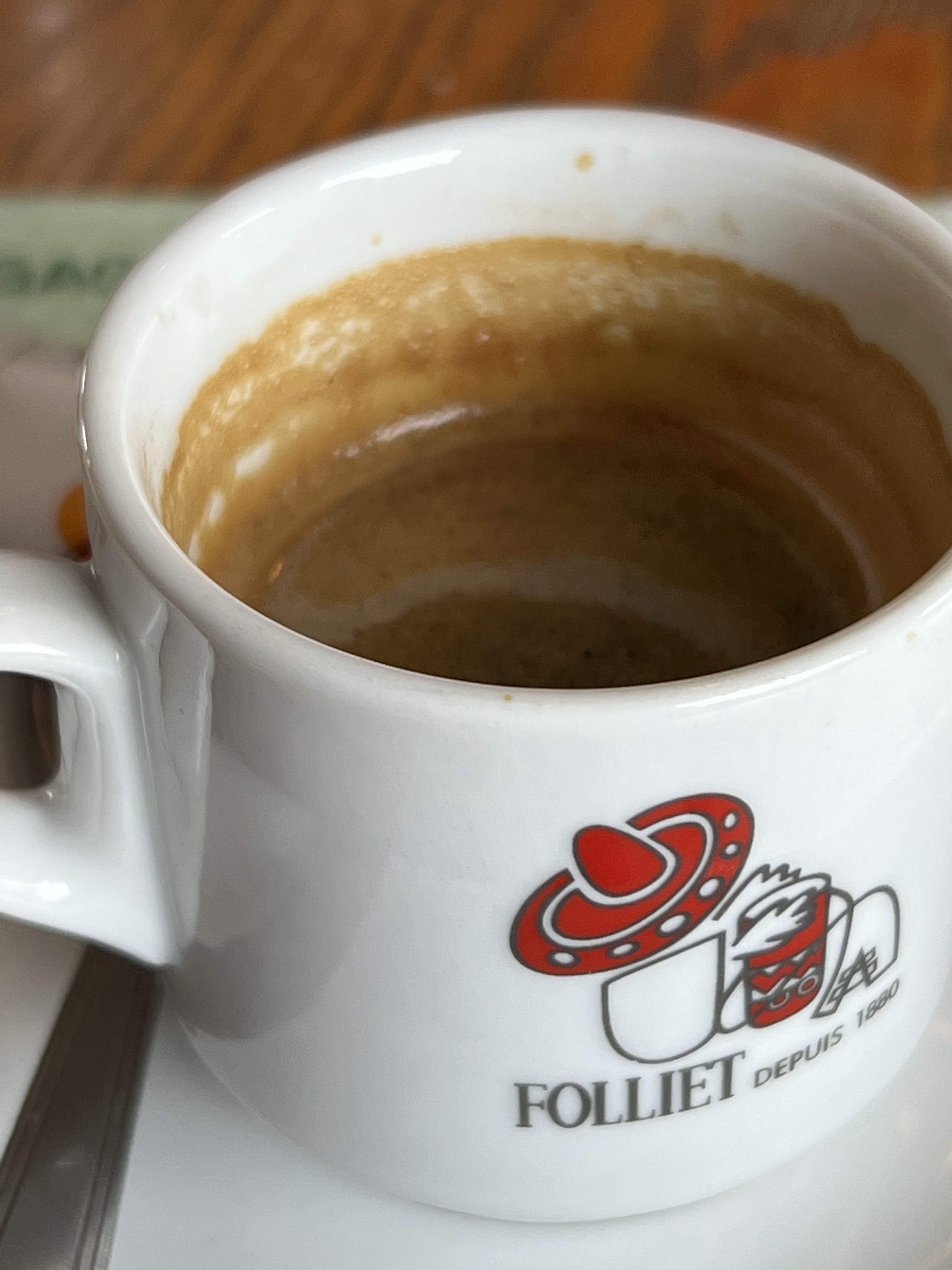 Nous avons juste bu un chocolat chaud (qui était bon, bien chocolaté et non à l’eau). Mais scandalisée de voir que l’accès aux toilettes est payant bien que nous ayons payé notre consommation… c’est une honte ! Le mec des toilettes est posé sur son canapé à regarder la télé et attend qu’on lui mette ses pièces dans le panier pour y aller