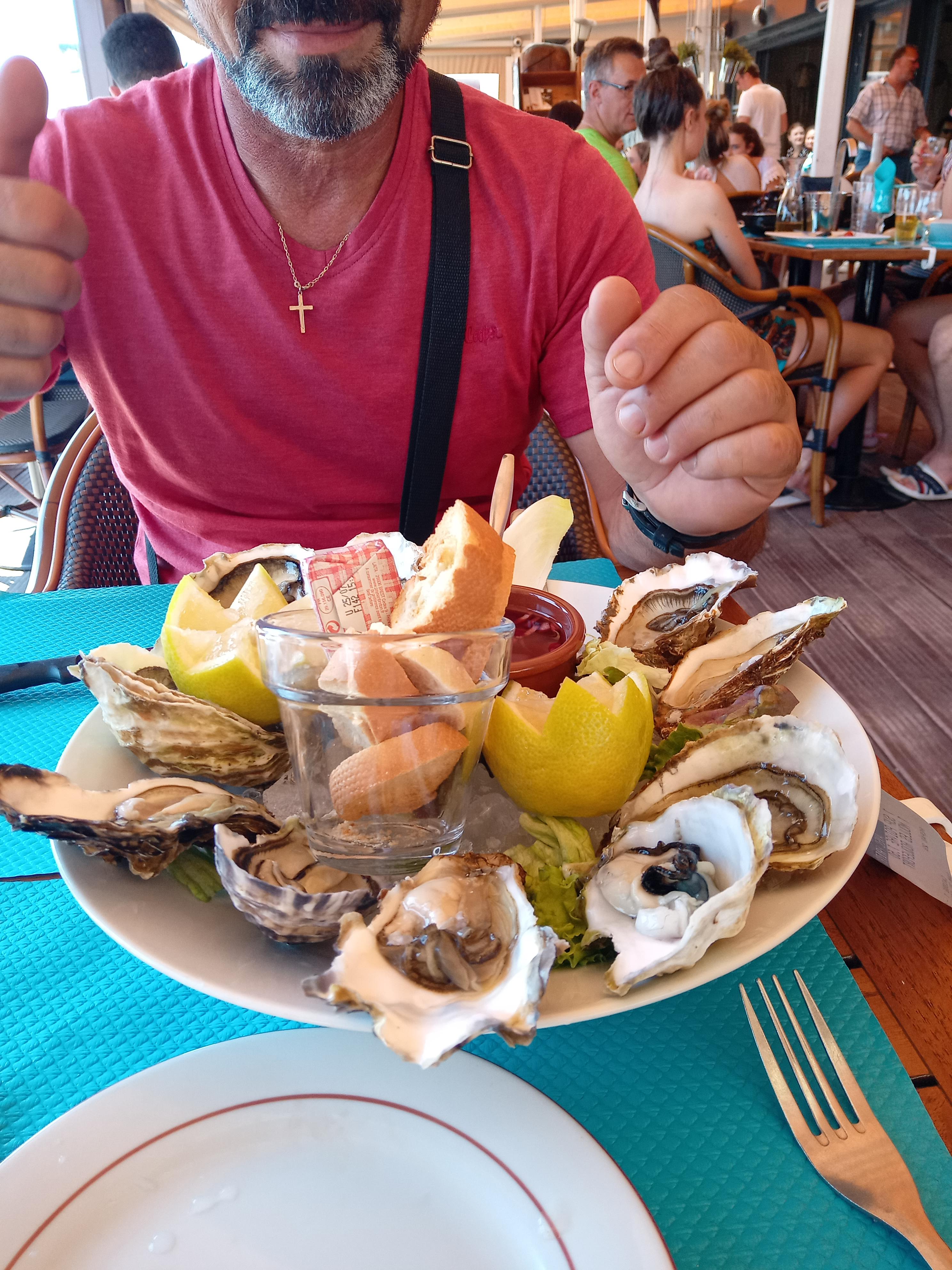 À FUIR ! Malheureusement, cet établissement n’a rien à voir avec celui que nous avions connu l’année dernière, car c’est l’opposé. Nous avions un bon souvenir de cet établissement les années antérieures, ils avaient de bons produits qui étaient frais à des prix très corrects. Fin Juin 2023, nous étions en couple, nous avons commandé pour boire du vin blanc en pichet de la maison de 1 litre, à notre grand étonnement il n’en font plus, donc nous avons commandé une bouteille de vin blanc qui était à 18 euros, la bouteille la moins chère. En entrée pour partager à 2, nous avons commandé le plateau de fruits de mer à 26,50 euros sur une présentation qui représentait un petit bateau de pêcheurs. Ce plateau contenait uniquement que: 6 crevettes, 6 huîtres, 6 bulots, 6 moules avec un petit gobelet d’ailloli et un petit gobelet à l’échalote. Nous avons été extrêmement déçus car les huîtres étaient mauvaises, pas fraîches et d’élevage. Nous avons laissé les 4 huîtres restantes sans les touchers. En ce qu’il concerne les moules, elles étaient trop cuites avec une mauvaise saveur, donc on a laissé le reste, les bulots n’étaient pas frais non plus, on ne les a pas mangé non plus. En revanche seulement les 6 crevettes soient les 3 crevettes par personnes étaient bonnes avec le peu d’ailloli qu’il y avait. C’est une véritable arnaque et scandaleux de payer 26,50 euros pour manger uniquement que 3 crevettes par personne puisque tout le reste n’est pas frais et pas bon en laissant tout sauf les 6 crevettes. Nous n’étions pas là pour avoir uniquement qu’une jolie présentation mais au moins manger frais! En 2 eme plat, nous avions commandé 2 plats de moules au Roquefort au prix de 16,90 euros par personne, soit un total pour 2 personnes de 33,80 euros. Les moules étaient fraîches mais il y avait à peine un semblant de Roquefort et peu de moules par rapport à l’année dernière. Les frites en accompagnement étaient congelées et de mauvaises qualités, la quantité était minuscule et elles étaient présentées dans un petit gobelet minuscule à dessert. Donc nous avons mangé uniquement que les moules. Conclusion, nous avons payé une addition pour 2 personnes d’un total de 78,30 euros en n’ayant pas pris de café ou de dessert. Par conséquent, cet établissement applique pour l’été 2023 des prix exorbitants en n’étant pas au niveau des tarifs de la Côte d’Azur que nous connaissons, en vous mettant en plus sur la table des produits qui ne sont pas tous frais. C’est une véritable honte ! Nous nous sommes sentis arnaqués et volés comme un couple de pigeons voyageurs. Donc, nous ne reviendrons plus jamais dans cet établissement devenu crapuleux qui a changé de propriétaire. Un établissement qui est l’opposé de celui que nous avions connu les années antérieures en période estivale.