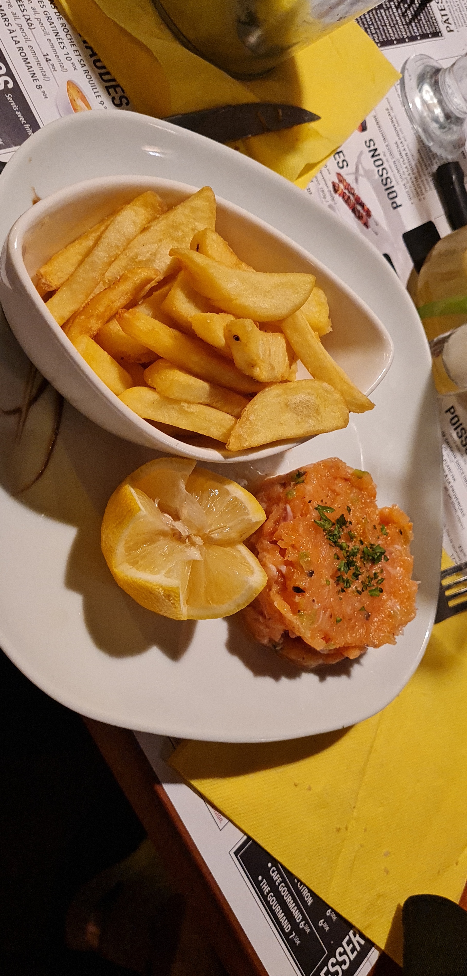 Trio de saumon pris ( 20e le plat ) poisson très sec, trop cuit, poisson fumé aucuns goût, surgelé. Tres déçue de mon plat. Je n'ai voulu rien prendre d'autres, frites congelés.. hygiène des lieux laisse à désirer.. ( le sol ) les serveur ne sont pas organisé très long pour prendre une commande.. d'autres personne arrivé après nous ont été servi avant nous. Je n'y retournerais plus!!!