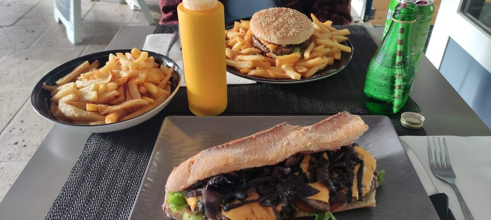 Hamburger, paninis et frites de tres bon goûts, rien à dire sur la cuisine en elle même Ceci dit le lieu n'est pas très beau
