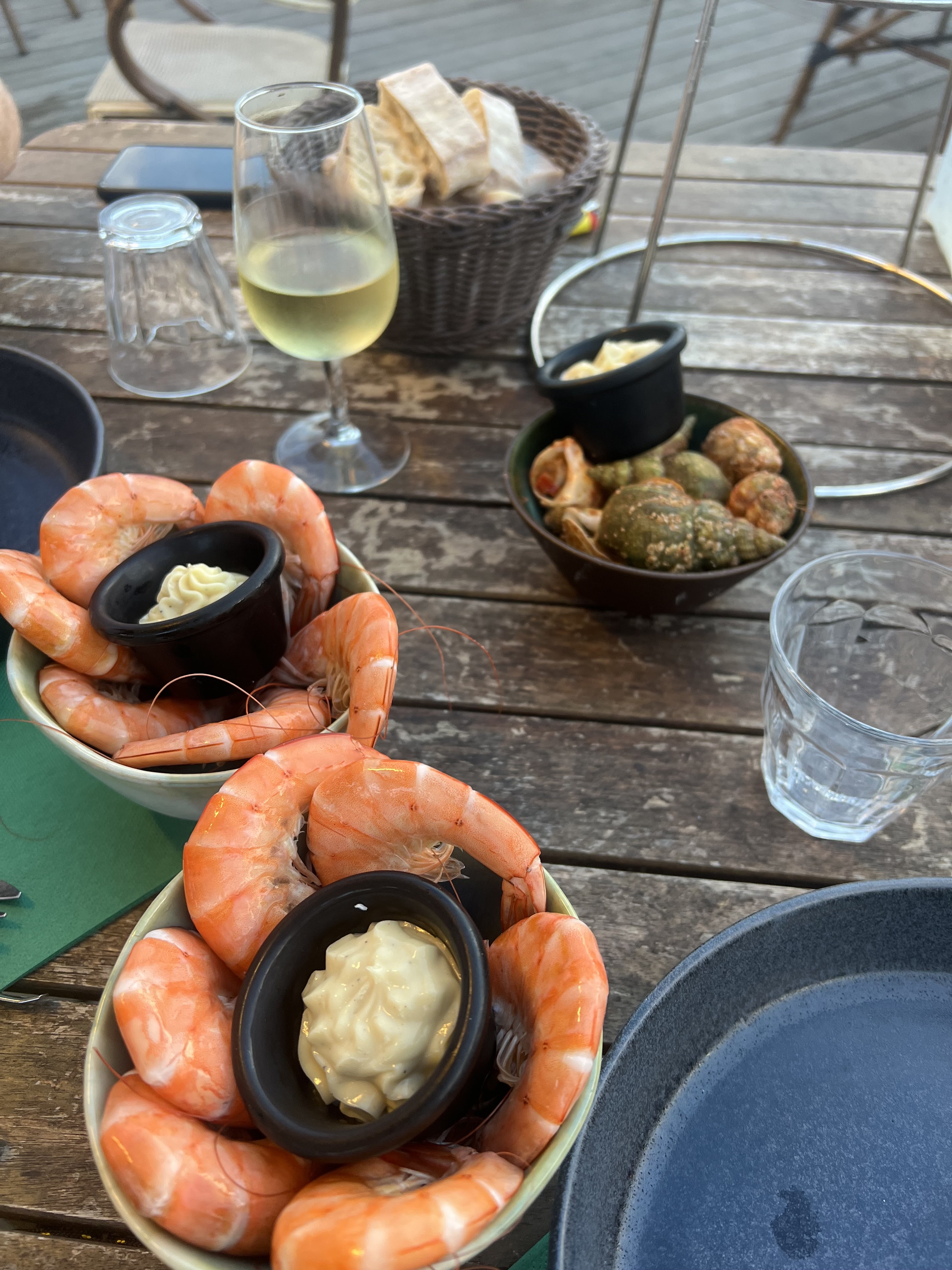 Nous avons eu une très belle table, avec une magnifique vue sur le bassin. Produits de qualité, les huîtres étaient délicieuses! Pas assez de crevettes à mon goût dans une portion au vu du prix annoncé mais ça ne m’empêchera pas d’y retourner !