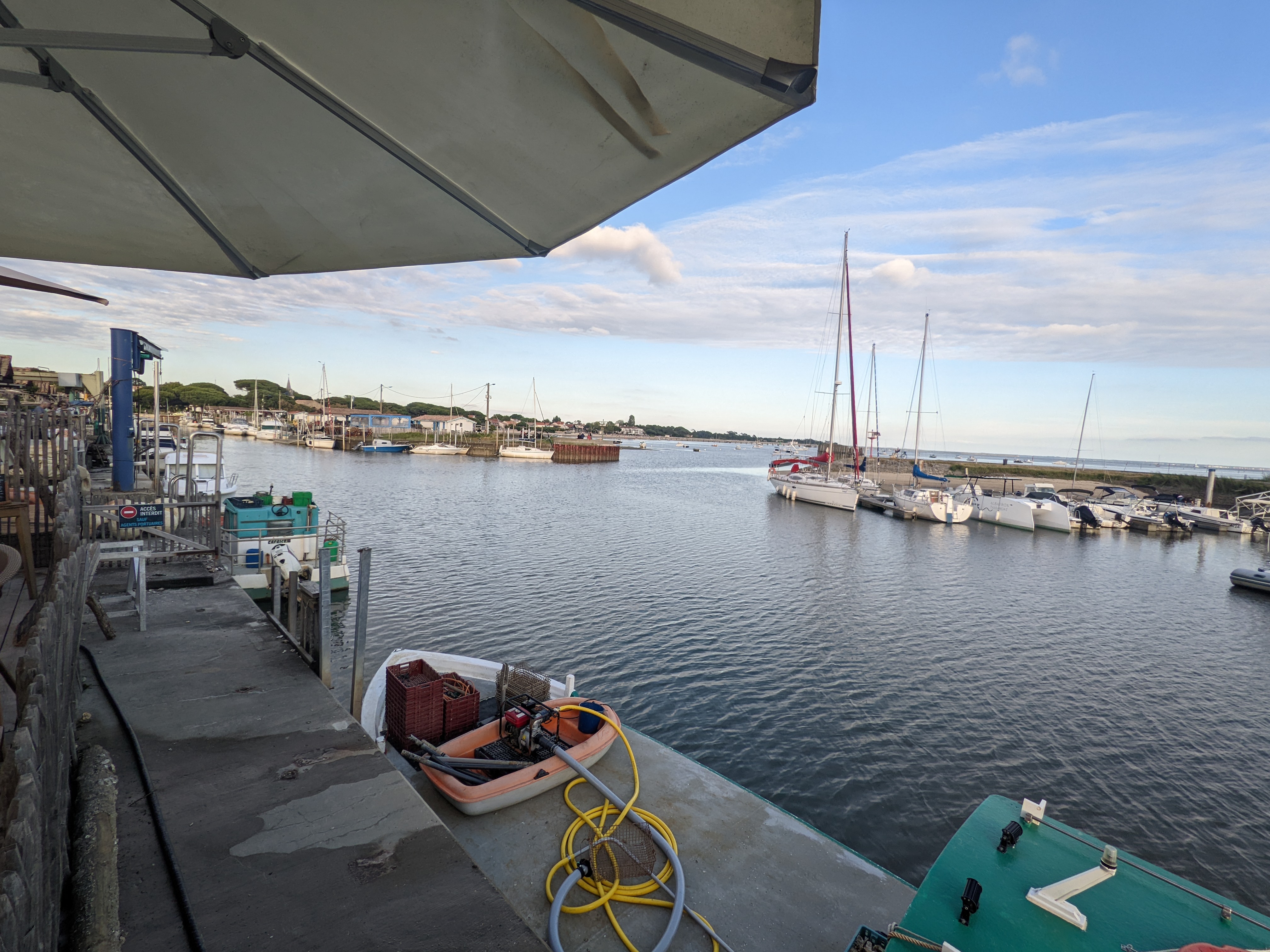 A chaque fois c'est le bonheur. J'adore cette ambiance de port dont le paysage évolue très rapidement au coucher du soleil et du changement de marée. Comme d'habitude tout était délicieux. Les huîtres un peu l'auteur mais un bel équilibre iodé, le blanc veilles vignes un régal. Seul bémol : les prairies du bassin qui sont certes bonnes mais minuscules. Je reviendrai en espérant que les prochaines seront plus charnues