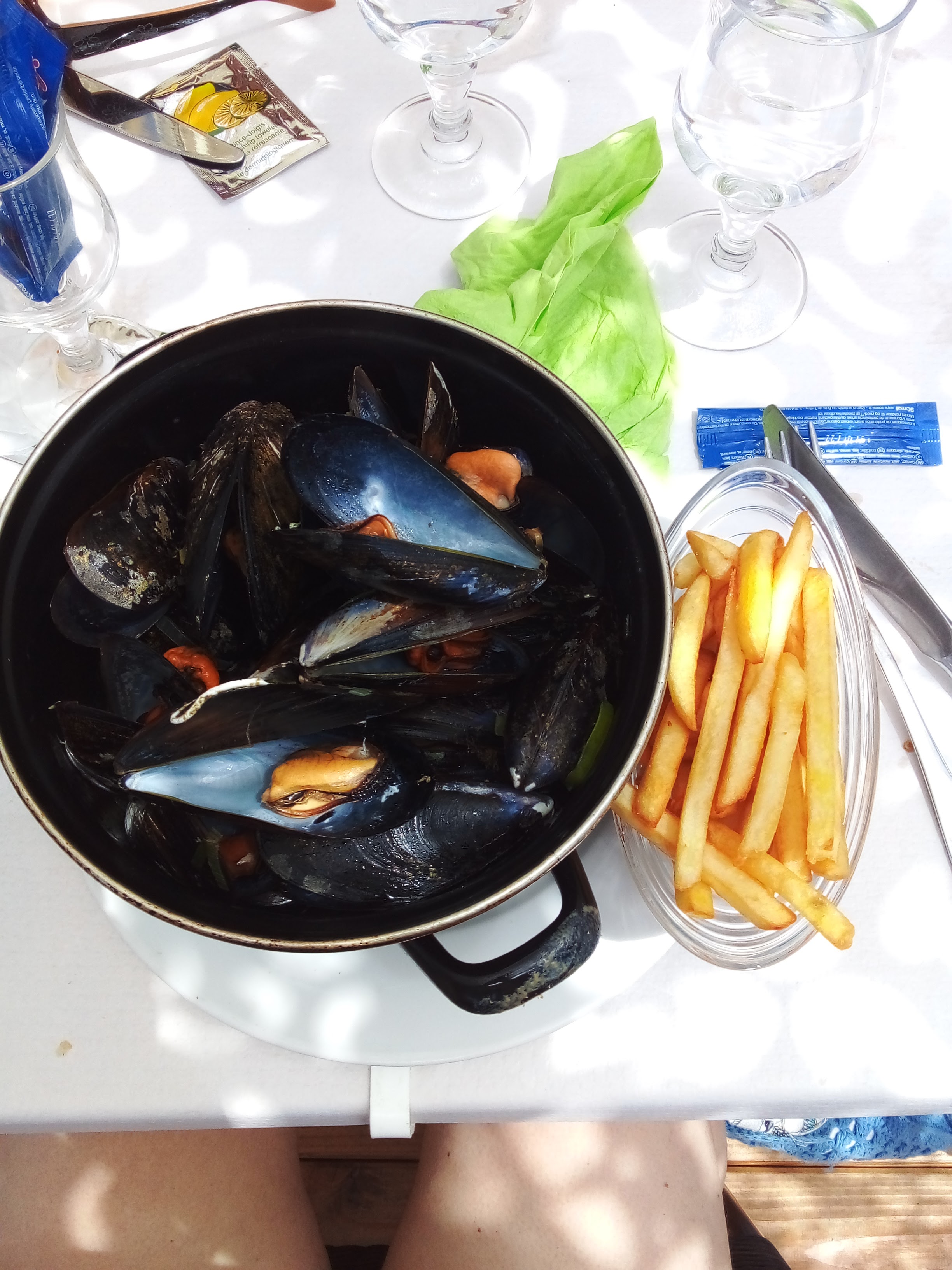 Le 11 mai 2018 Service très très long Soupe de poisson limite froide Frites crues et moules trop cuites dessechées Rouille de sèche très bonne mais demi portion... vraiment dommage. 1ere et derniere fois