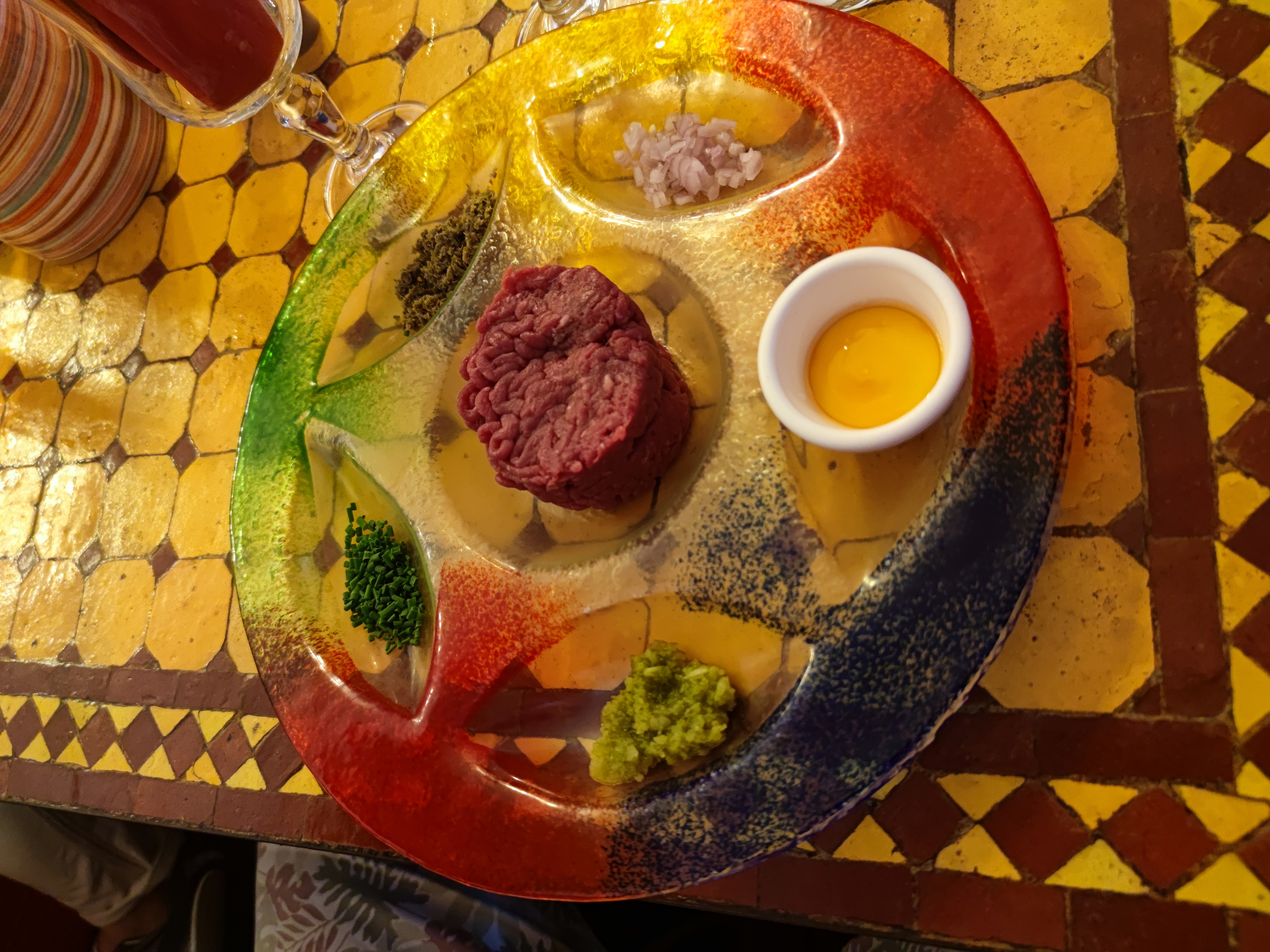 Accueil et serveurs agréable. Ne pas prendre le tartare, viande fraîche mais il faut se le préparer soit même avec des ingrédients mis dans des compartiment pas du tout adapté, pas de sauces pour donner du goût (obliger de mettre de la moutarde). Les frites ne sont pas cuites. Café clair mais beaucoup trop fort.