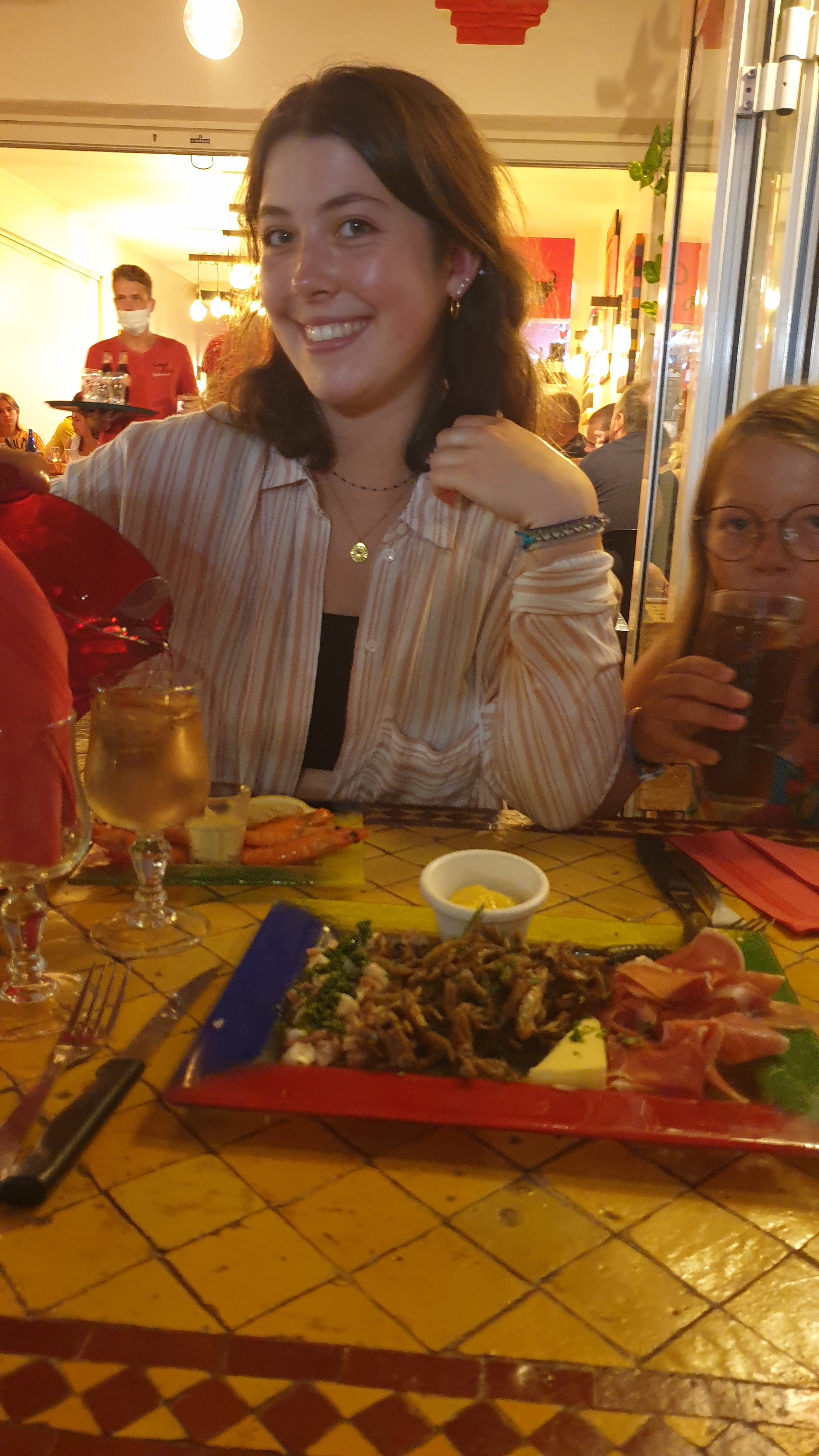 Des plats pas bons avec des sangrias mal présentées sans tranche d orange dedans , le jambon dit “ du pays” qui est rien d autre qu un jambon de Lidl , la sèche congeler . Tables toutes serrées avec des serveurs peu agréables qui utilises le “tu” pour nous parler , nous prend par le bras pour nous placer … A éviter !