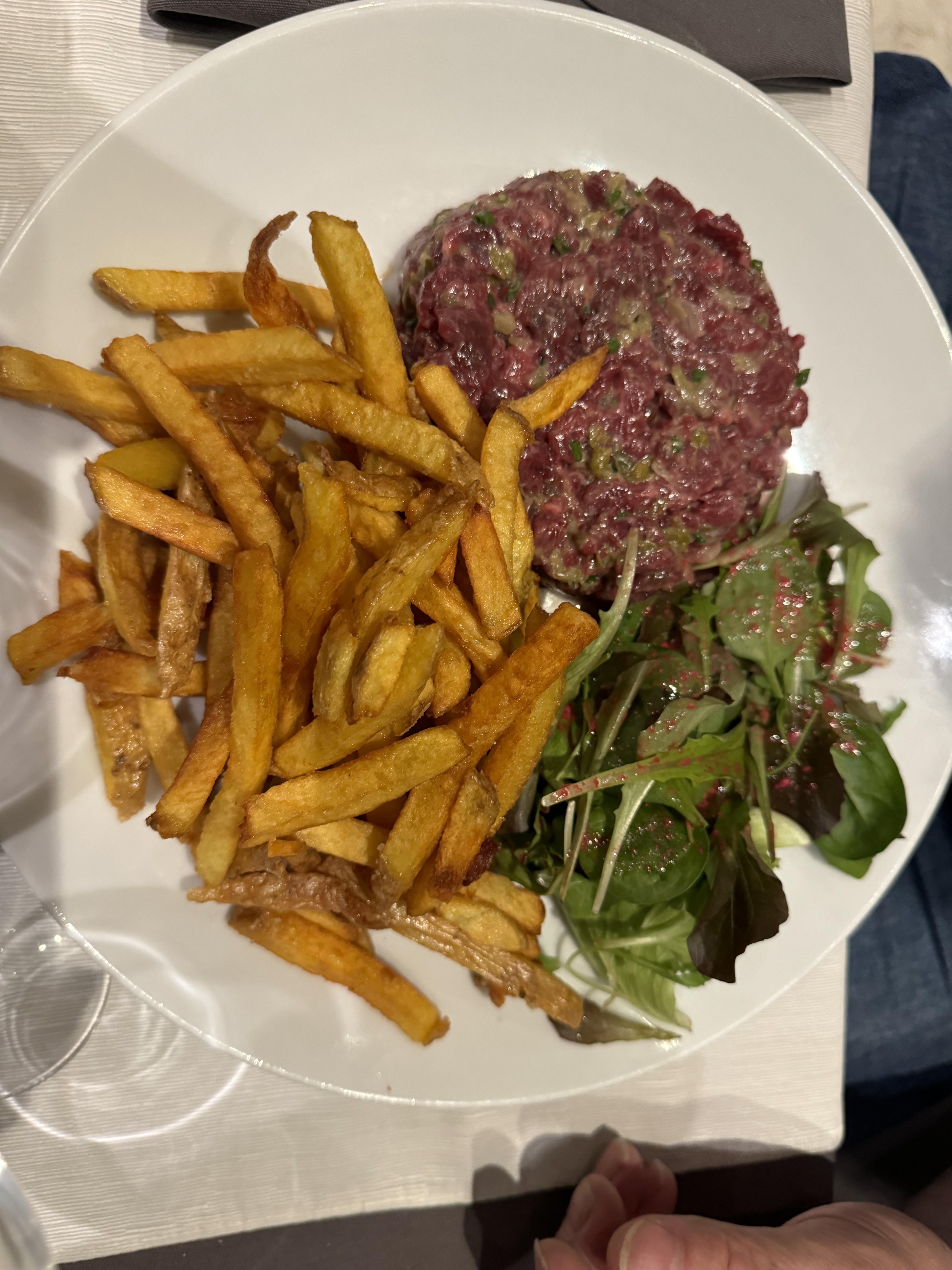 Très bon tartare frais et goûteux. Les frites et les fromages sont bons. Un peu cher à la carte, le menu du midi est plus raisonnable niveau prix (18€50 tartare du jour et dessert ou fromage).