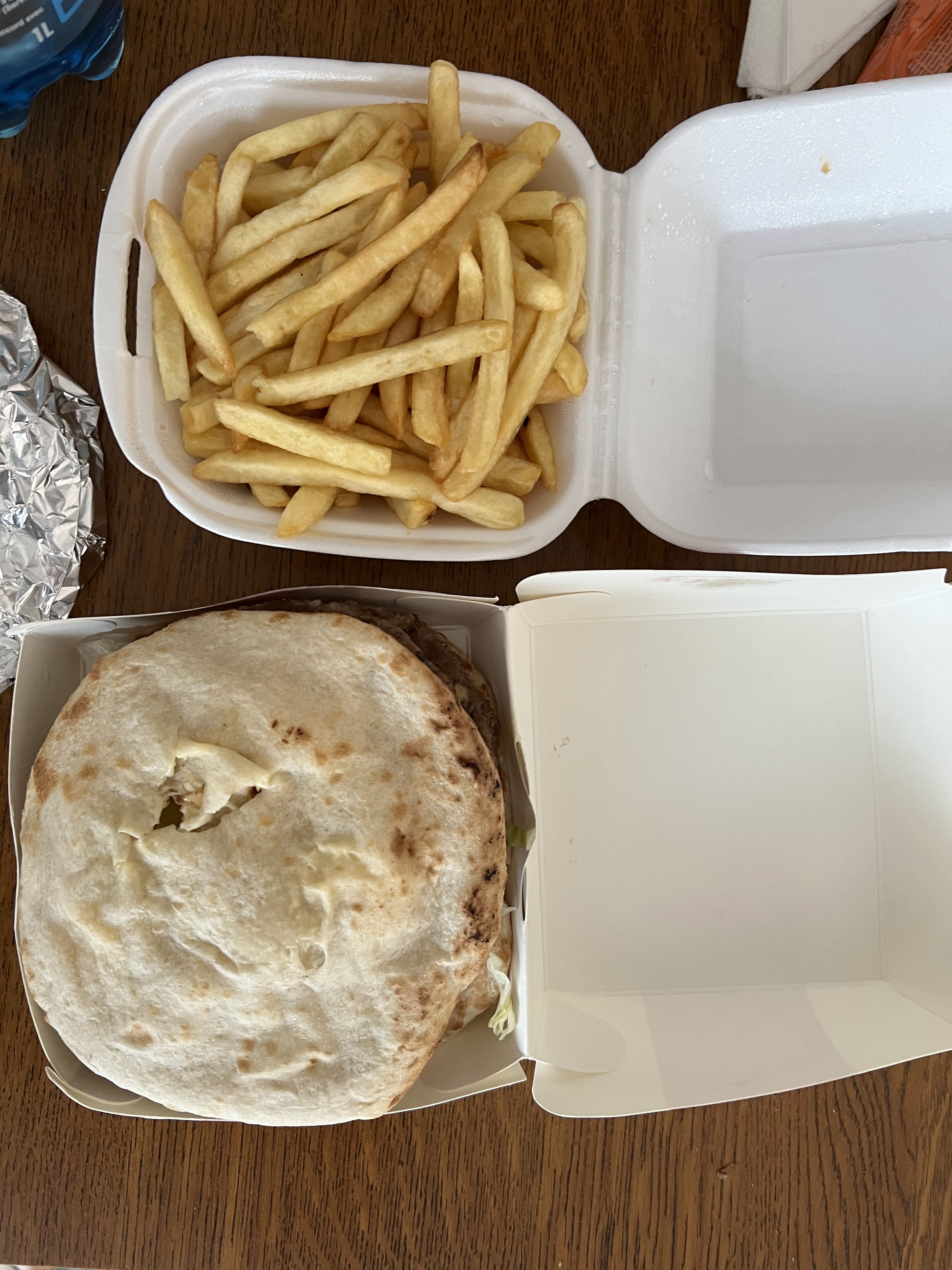 Burger naan façon boucher excellent, on ne reste pas sur sa faim ! Bon mangeur je recommande 👍🍔 Peut être une amélioration sur les frites sinon rien à dire