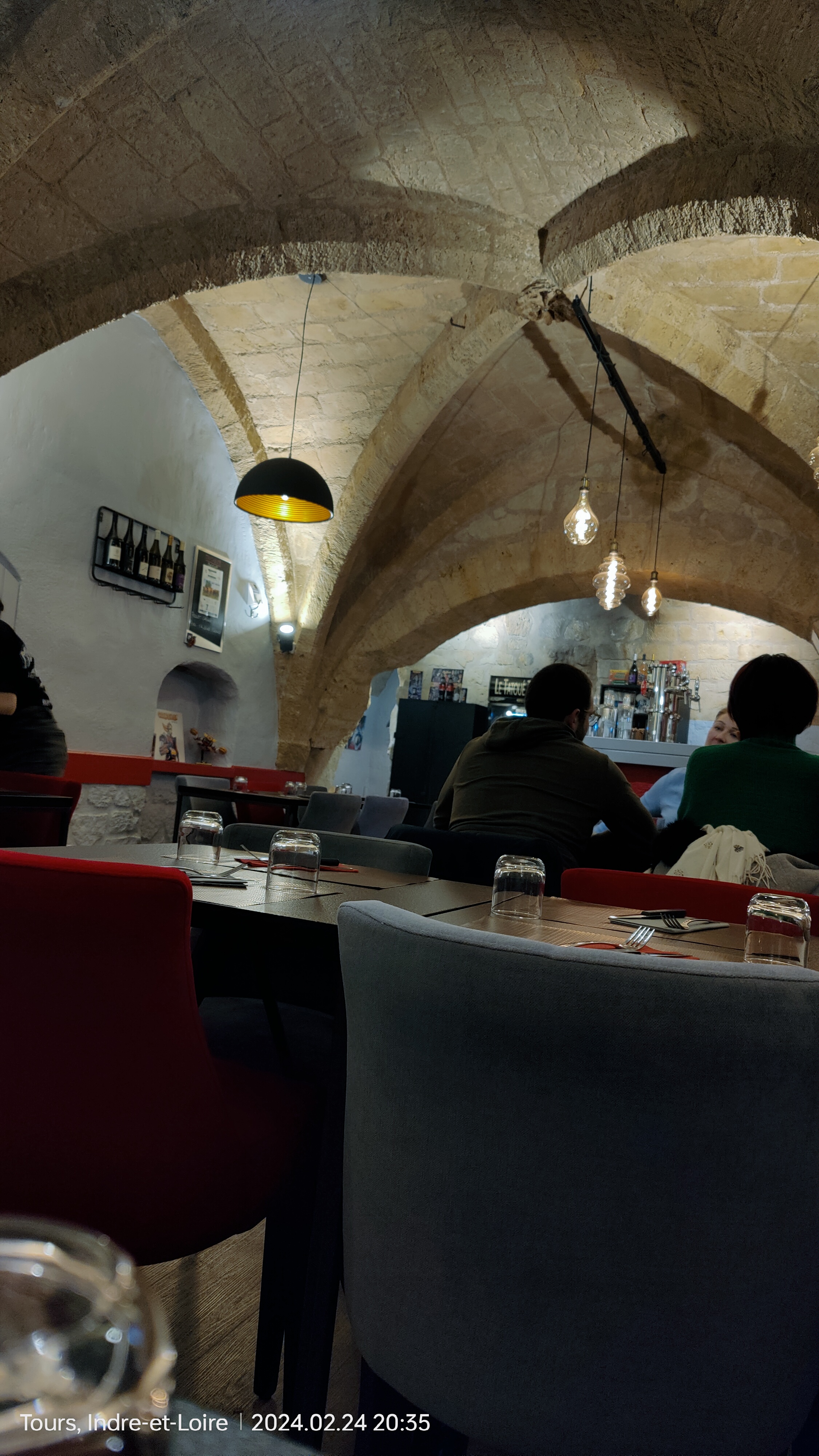 Peut-être un peu rapide entre l'apéritif et le service des plats sinon c'est excellent et la cadre est magnifique à Tours centre. Je recommande vivement.
