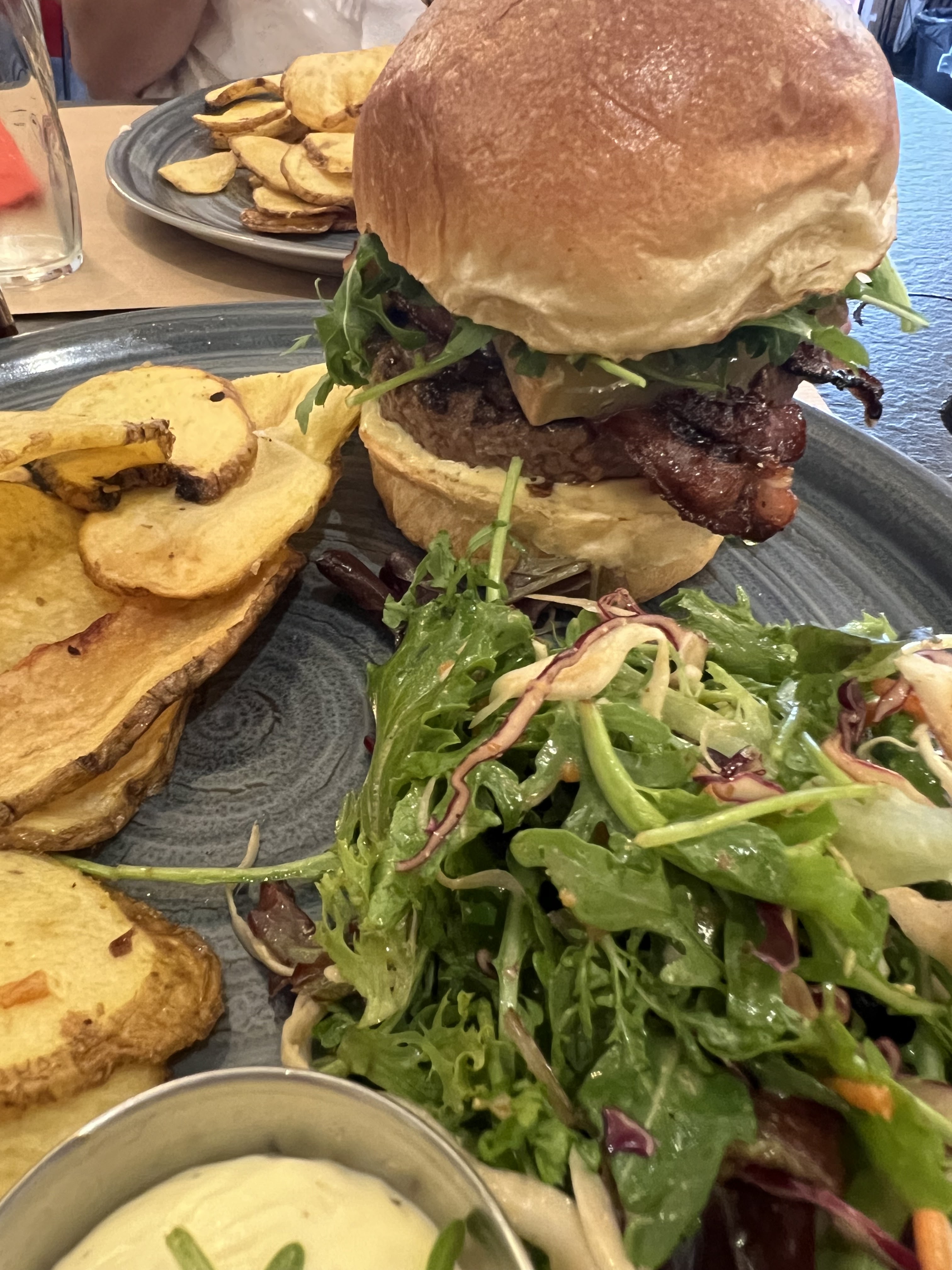 Le lieu est magnifique, le personnel très accueillant et souriant, et - surtout - les burgers sont excellents : fait maison, saveurs originales, parfaitement cuisinés et gourmands, avec un pain hyper moelleux : juste DÉLICIEUX ! On reviendra ! Petit bémol sur l’absence de petites entrées style entrées à partager avec l’apéro, et je pense que les desserts pourraient être un peu plus poussés (peu de choix d’autant que la carte changeait dans une semaine et que deux desserts sur 6 n’étaient plus dispo). Mais les quantités du plat principal suffiront à la majorité des clients