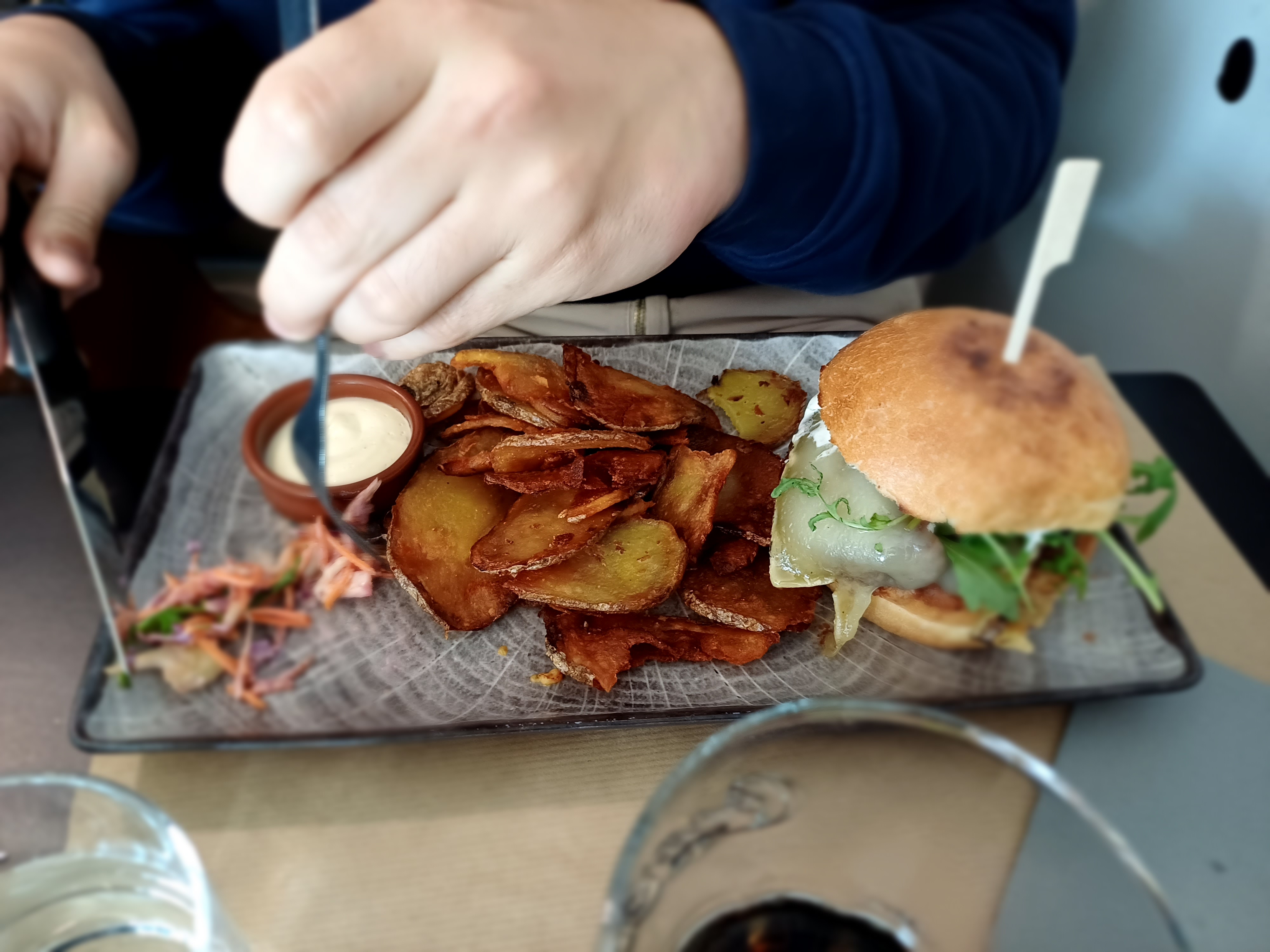 Un excellent restaurant , qui invite à revenir avec un personnels très sympa , accueillant et une équipe à l'écoute ! Nous avons pris chacun un burger très frais accompagné de pommes de terre au four, très bon ! Produits frais et de bon qualité, plat copieux, service rapide.