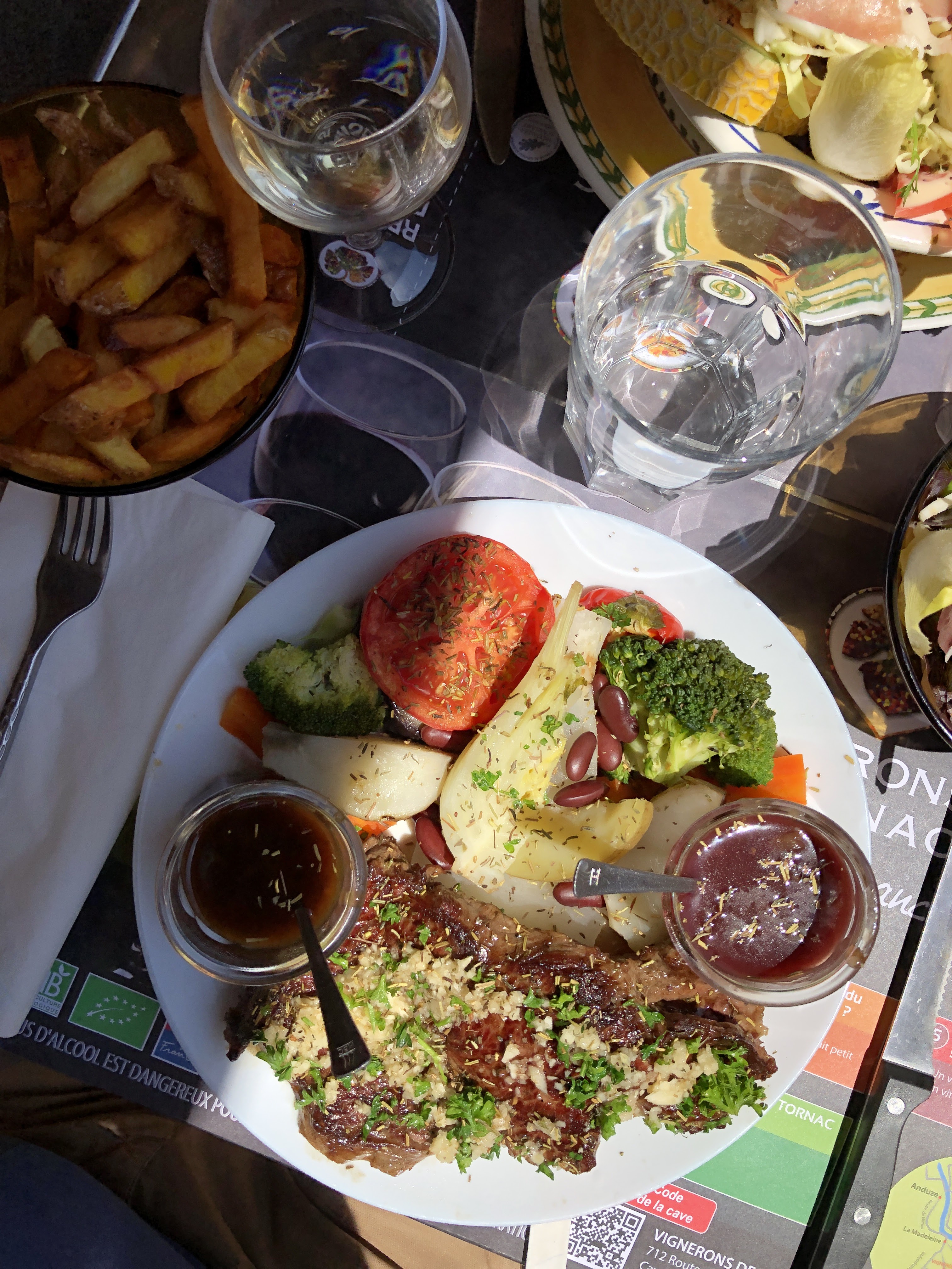 Assiettes copieuses et remplis de légumes différents patates douces, rutabaga, céleri, frites... Rapport qualité prix imbattable!