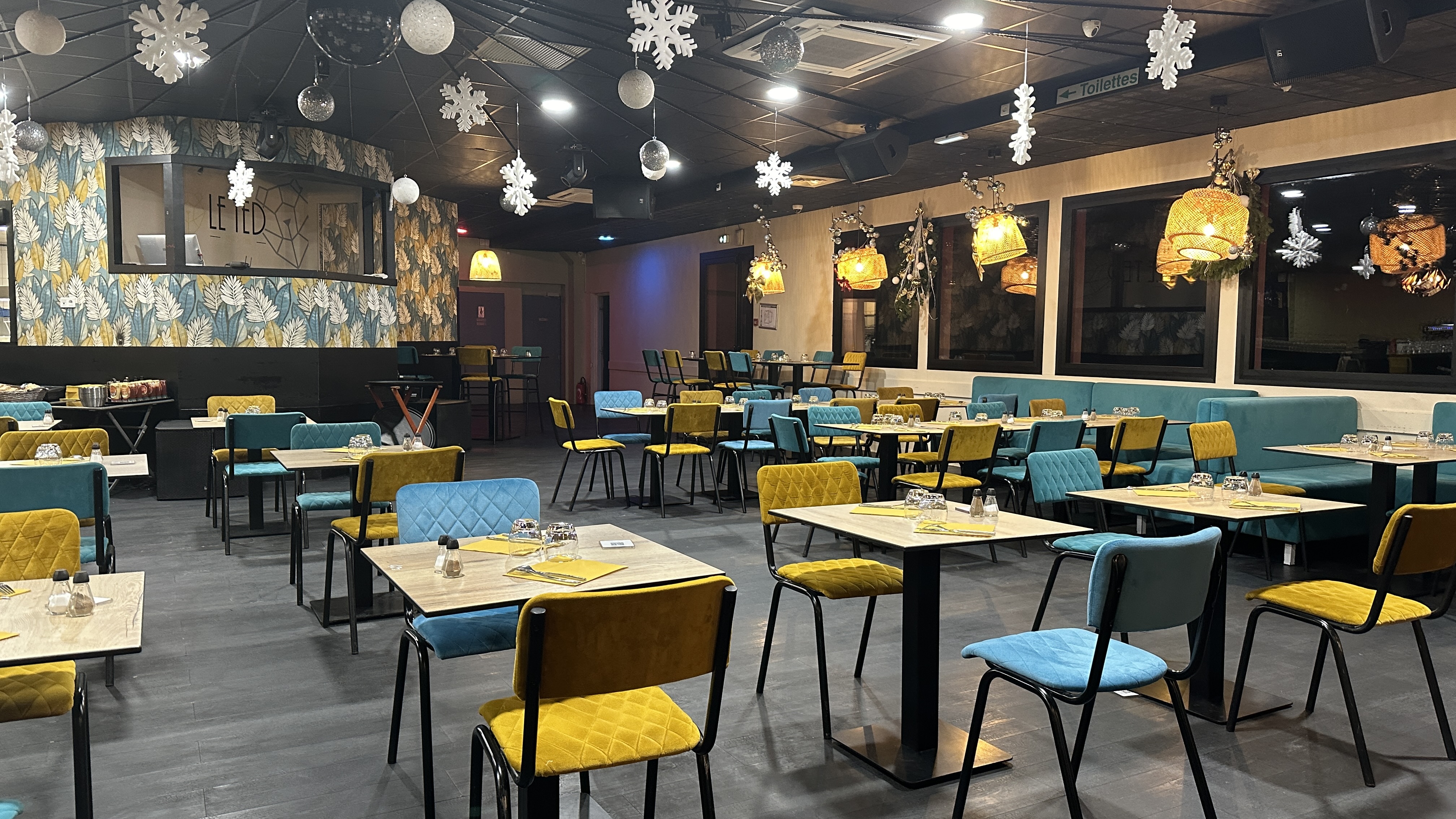 diner du nouvel an 2023/24 : service top, diner pas mal dans l'ensemble (soupe et plat très bien, saumon très salé et dessert trop sucré dommage). Mais alors le DJ au secours ! Des transitions infâmes avec des faux scratches pas en rythme, au milieu de presque tous les morceaux, pas de montées sérieuses, pas de set bossé, il parle au milieu des morceaux avec des blagues, on passe sans transitions de beats 80's à du reggae puis C François,...on est parti avant la fin ...et c'est rare .