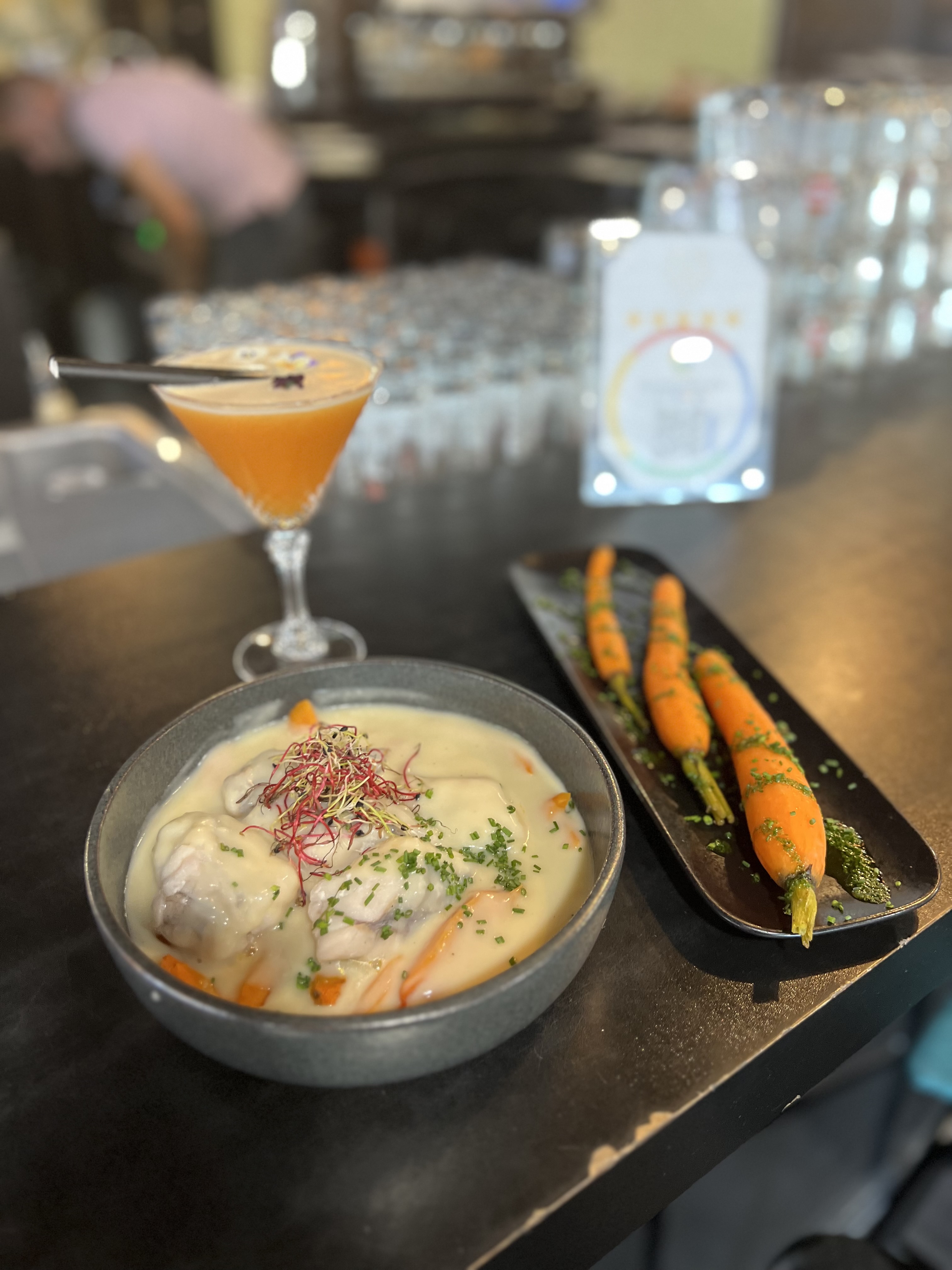 En attendant mon shooter, je repense au repas délicieux mais aussi au service au top de Pauline (agréable, souriante, à l'écoute...). Je reviendrai avec plaisir et mes collègues aussi.