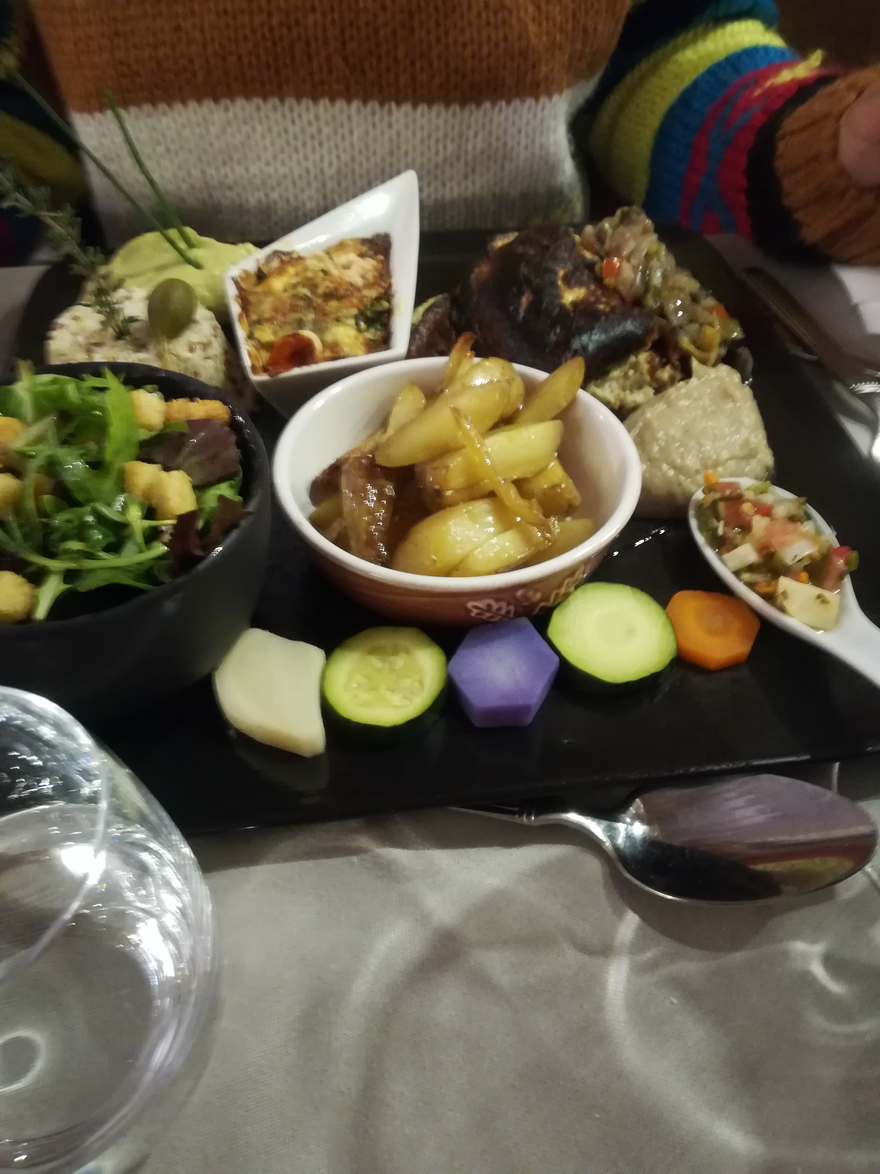 très déçu par le repas surtout par le plat tortillas avec veau ( chercher la viande !!!!! il n'y en avait pratiquement pas. sauf des légumes fades sans gôut)le dessert correct sans plus deux minis boules de glace un peu de volka et quelques toujours minis morceaux d ananas. Payer 35 euros c'est se moquer des clients. un peu rapide entre les plats. dommage car personnels sympas. un geste du patron cafés gratuits